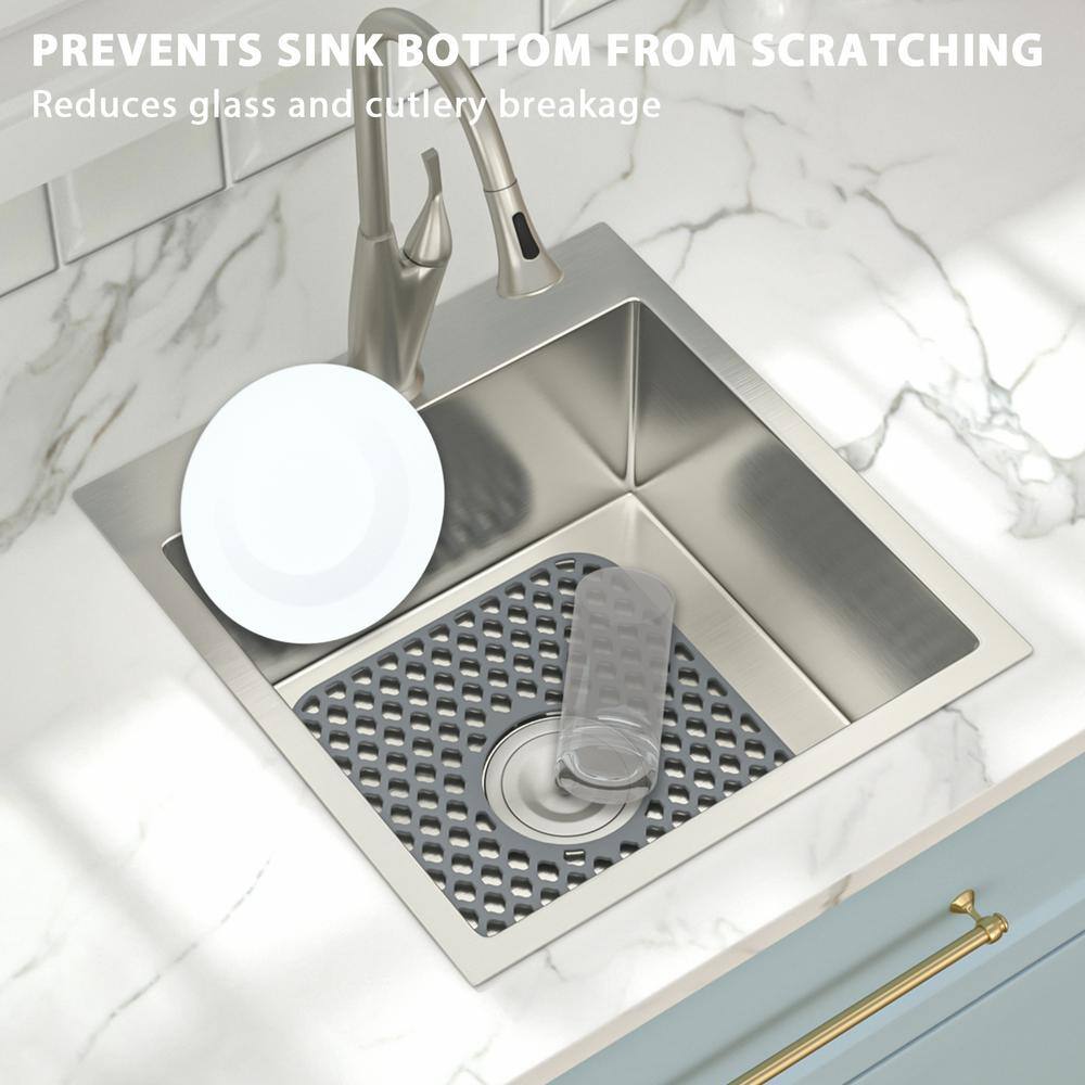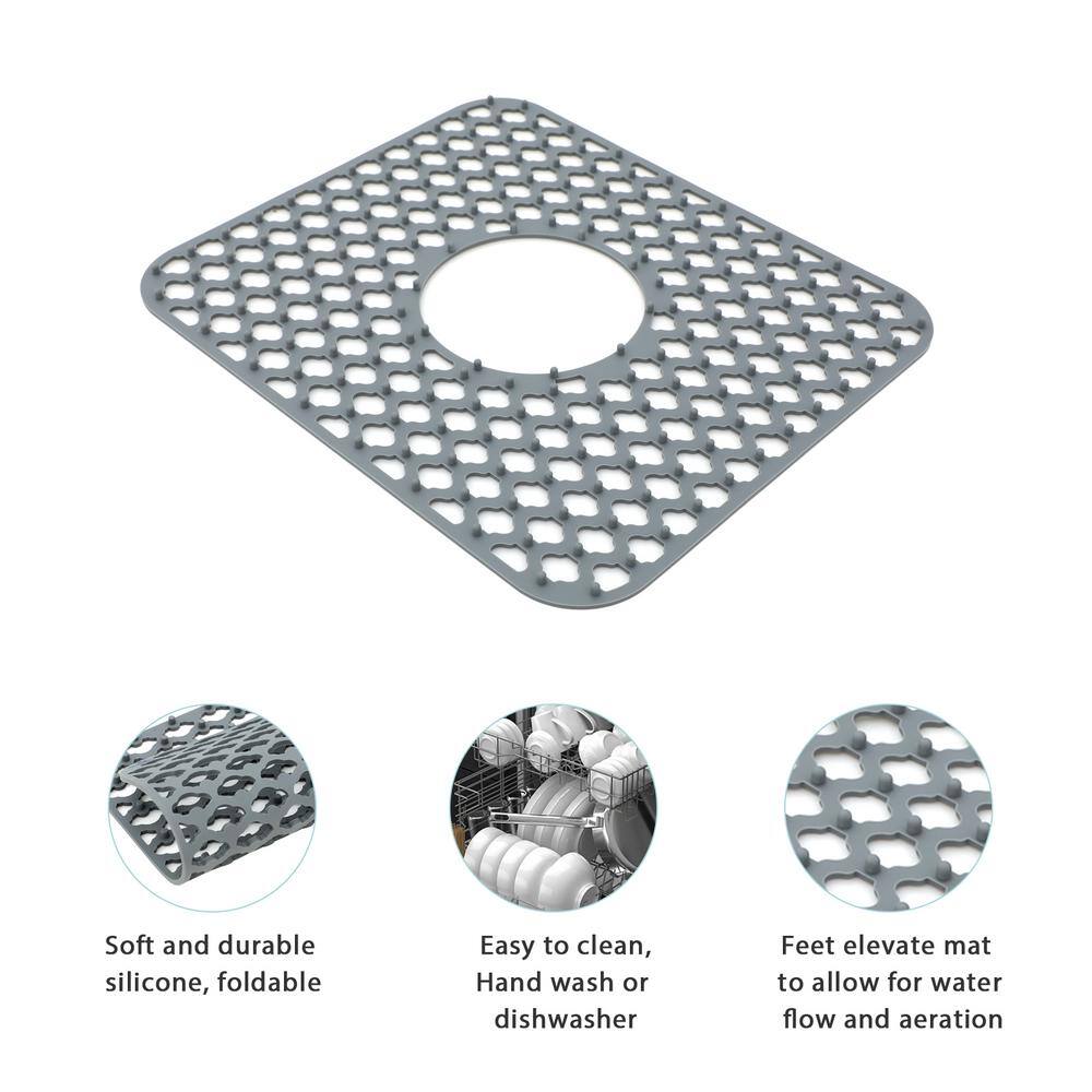 Transform your kitchen into a sanctuary of style with the LORDEAR Silicone Sink Grid. Its sleek, grey design blends seamlessly with modern aesthetics, while the durable silicone texture adds a touch of understated luxury. Visualize this grid not only safeguarding your sink but also functioning as an elegant drying mat for glassware and cutlery. Embracing both functionality and sophistication, it becomes an indispensable element in the pursuit of an opulent, yet practical kitchen environment.
