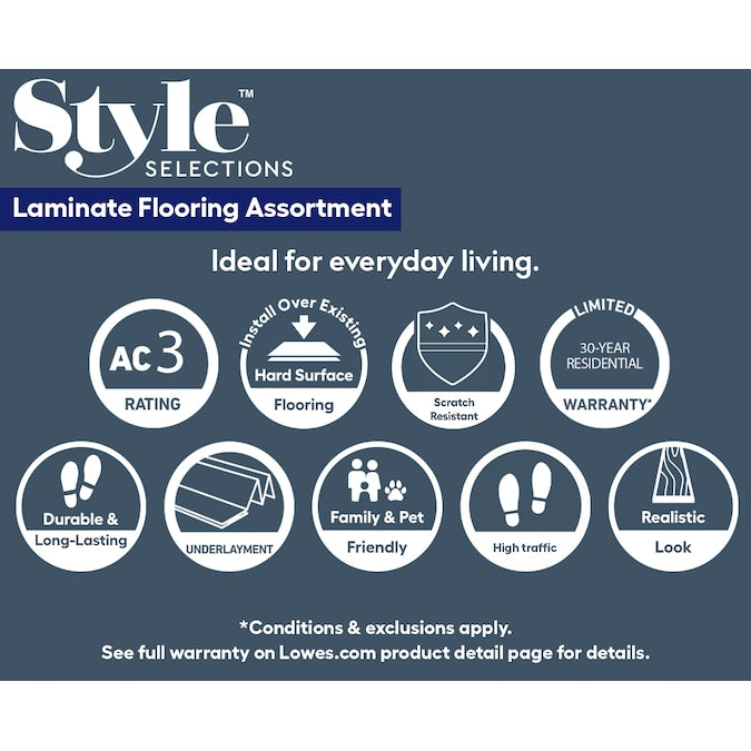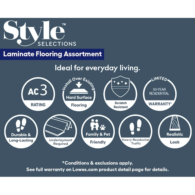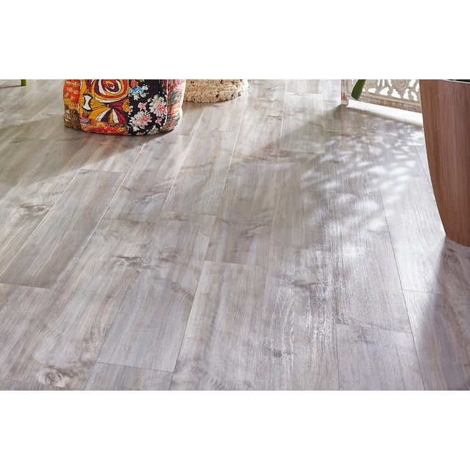 Achieve a stunning room transformation with the Ash Maple Wood Plank Laminate Flooring, featuring realistic wood grains and a versatile gray hue. Its wide, beveled-edged planks offer durability and elegance, while the click-lock installation makes it a breeze for DIYers and pros alike. Proudly manufactured in the USA, this flooring combines beauty and practicality with a 30-year residential warranty.