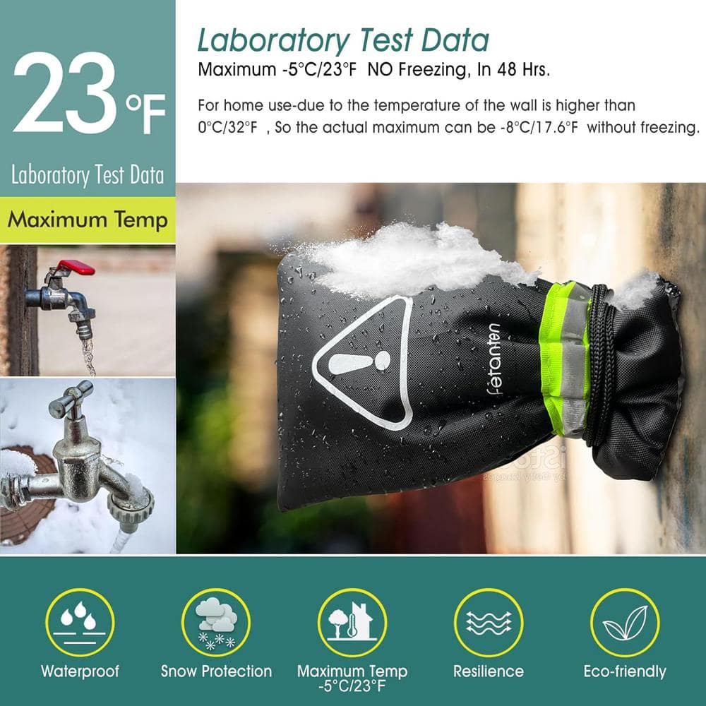 Advanced Winter Protection: Utilizes aluminized thermal insulation fabric to guard against temperatures as low as -8°F, ensuring outdoor faucets remain functional in extreme cold.