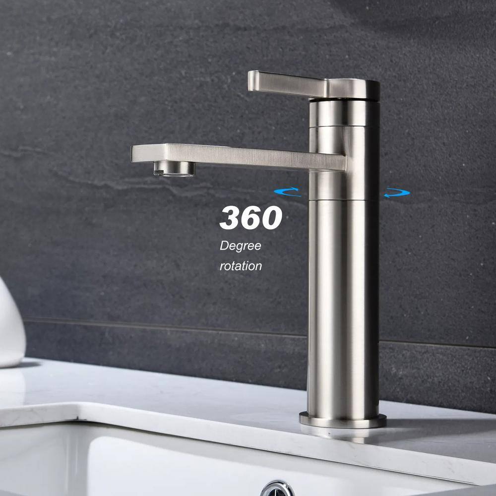 The Lukvuzo Single Handle Bathroom Sink Faucet in Brushed Nickel combines sleek modern design with practical functionality. Its spot-free finish ensures minimal maintenance, while the single-hole installation and single-handle operation make it user-friendly and effortlessly elegant.