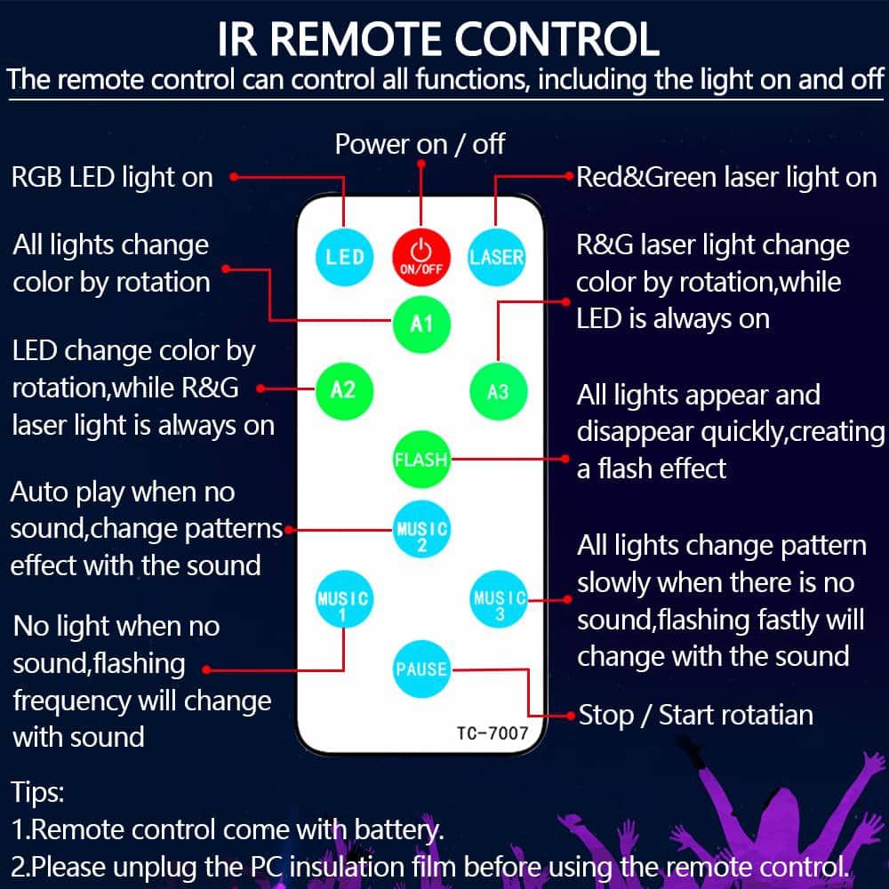 - Mesmerizing Display: Experience vibrant RGB color disco lights combined with vivid red/green laser projections.