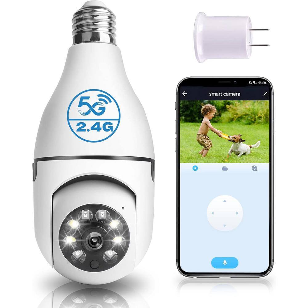 Ensure the safety of your home with the Lukyamzn Wireless Indoor WiFi Security Camera. This innovative device features color night vision and a 360-degree field of view, allowing for comprehensive coverage day and night. Effortlessly plug into any E27 socket, and stay connected via 2.4-5G WiFi with real-time 2-way audio and a powerful siren alert for enhanced security.