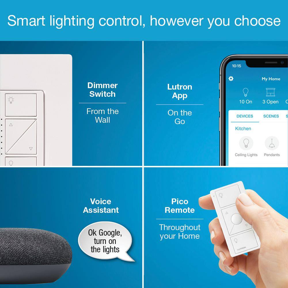 Experience seamless smart lighting with the Lutron Caseta Smart Lighting Dimmer Kit, featuring Google Mini. Effortlessly control your home's lighting with voice commands or via the Lutron app, ensuring a perfect ambiance every time. Ideal for enhancing convenience and security, this starter kit is perfect for any smart home enthusiast.