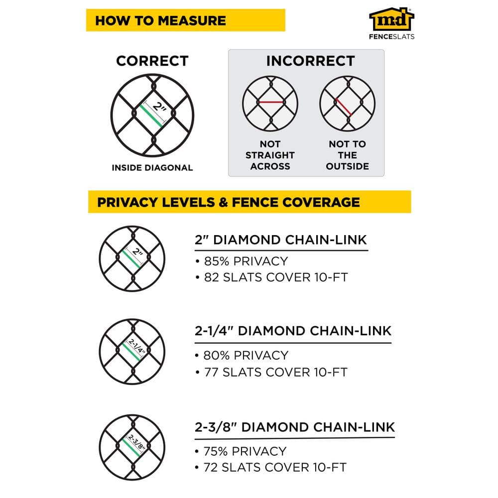 A: These slats are optimized for 2-inch diamond chain links, providing 85% privacy with variations for 2-1/4 inch and 2-3/8 inch links offering slightly different privacy coverage.