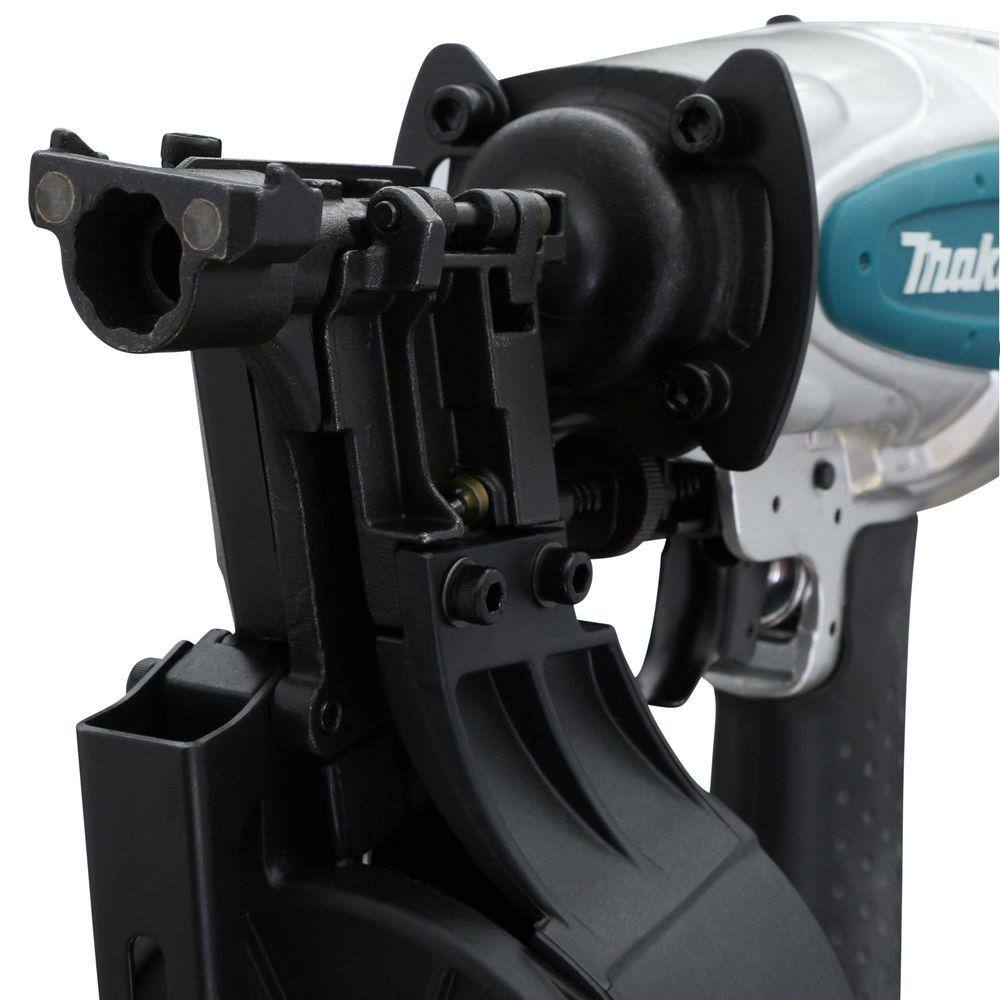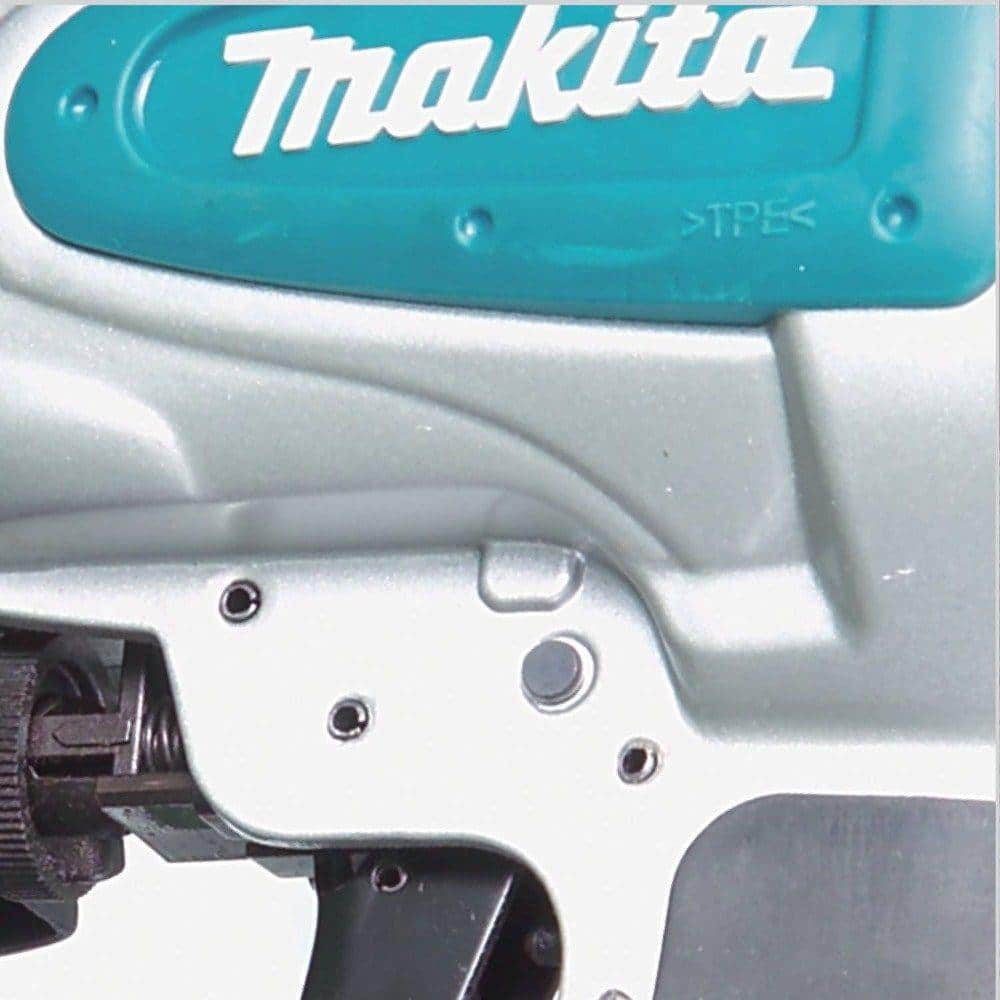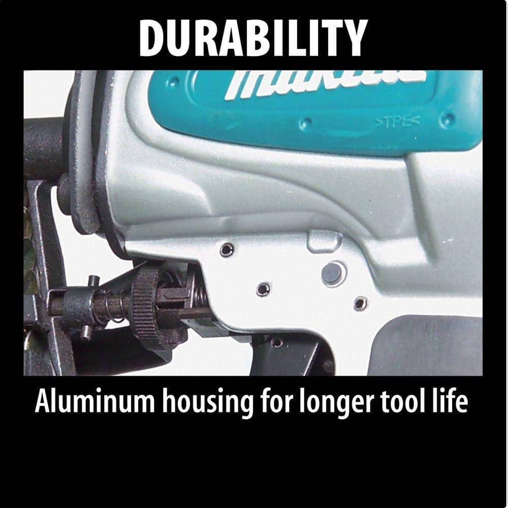 Infuse precision and reliability into every roofing task with the Makita Roofing Coil Nailer. Its sleek aluminum design not only offers durability but transforms the efficiency of your tools. Envision this nailer seamlessly fitting into your toolkit – its rubberized handle adds a touch of comfort, making extended roofing tasks a more enjoyable experience. Elevate your work with a tool that harmonizes functionality and sophisticated, robust craftsmanship, essential for the discerning professional.