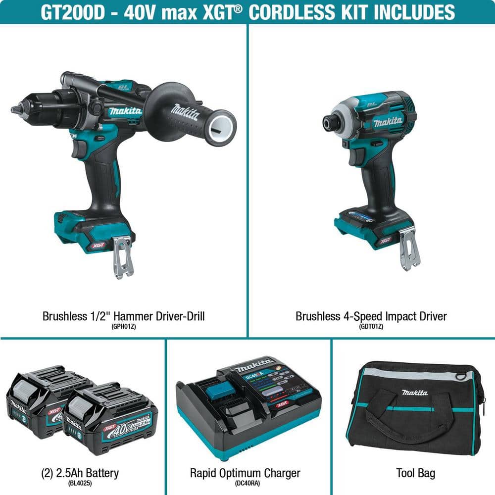 Makita 40V Max XGT Brushless Cordless 2-Pc. Combo Kit (Hammer Driver-Drill/Impact Driver) 2.5Ah