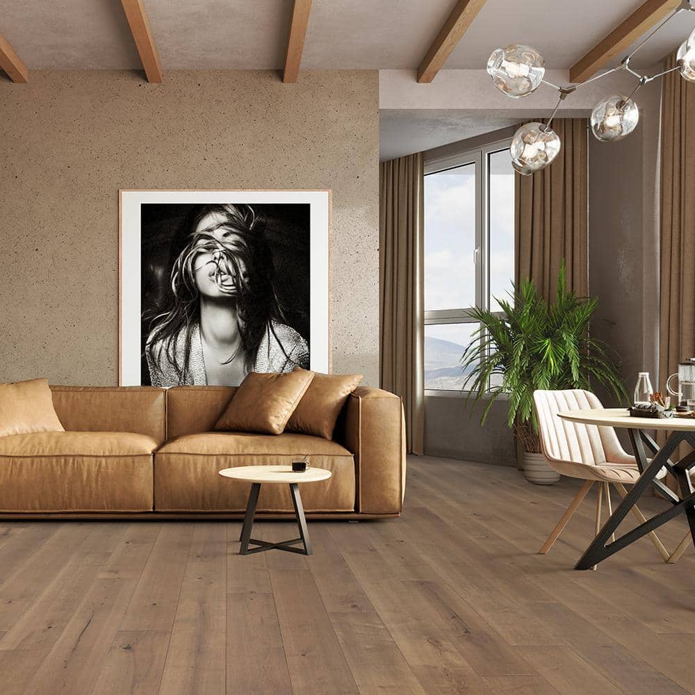 The Cardiff Maple Engineered Hardwood Flooring brings a touch of timeless luxury to any room. Its wire-brushed texture complements a variety of interior styles, from farmhouse chic to minimalist modern. Imagine a generous spread of these planks warming up your living area, with each hand-rolled edge subtly enhancing its crafted elegance. For a truly sophisticated ambiance, pair this flooring with neutral furnishings and metallic accents—it's an indispensable element for those seeking refined living.