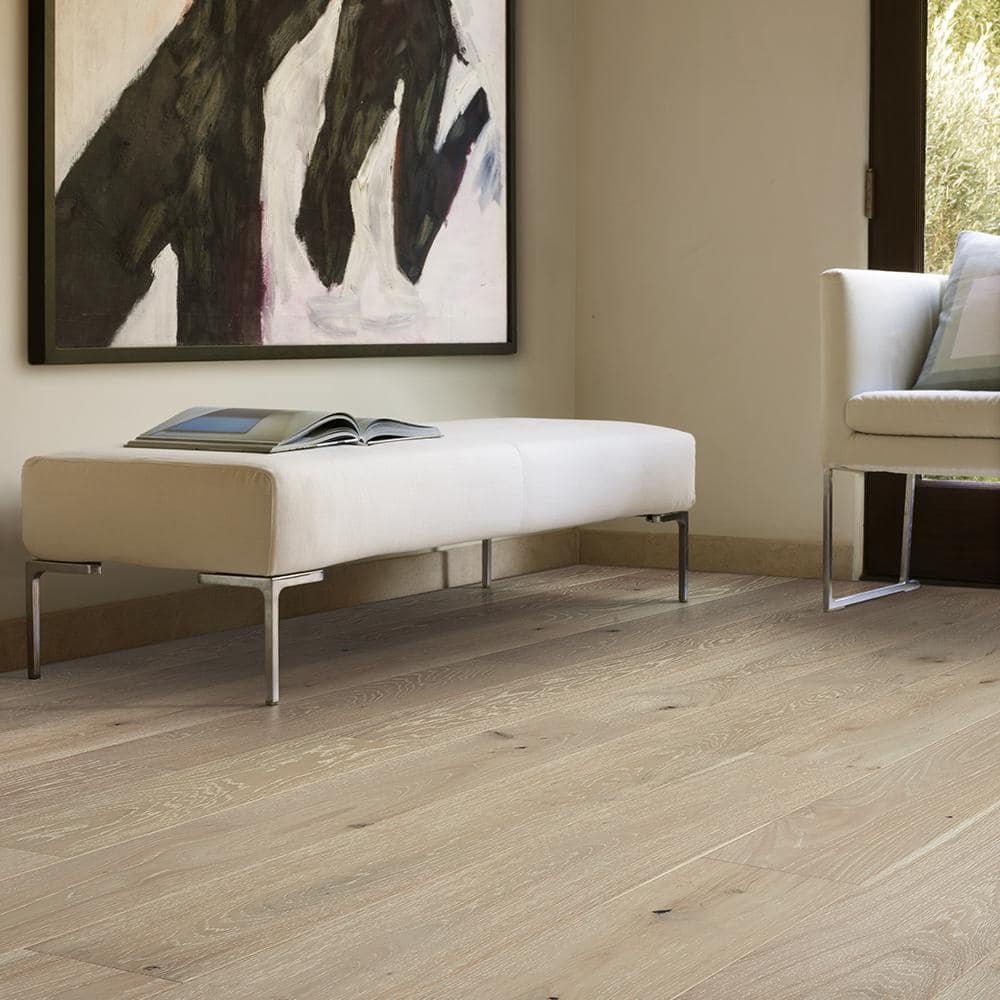 Transform your interiors with the Malibu Wide Plank Marshalls French Oak flooring, where sophistication meets resilient performance. Each plank’s wire-brushed texture tells a story, exuding character and charm. Consider juxtaposing its serene, light-toned finish with dark, contemporary furniture for a striking contrast. This floor is more than a foundation—it is an emblem of modern luxury living.