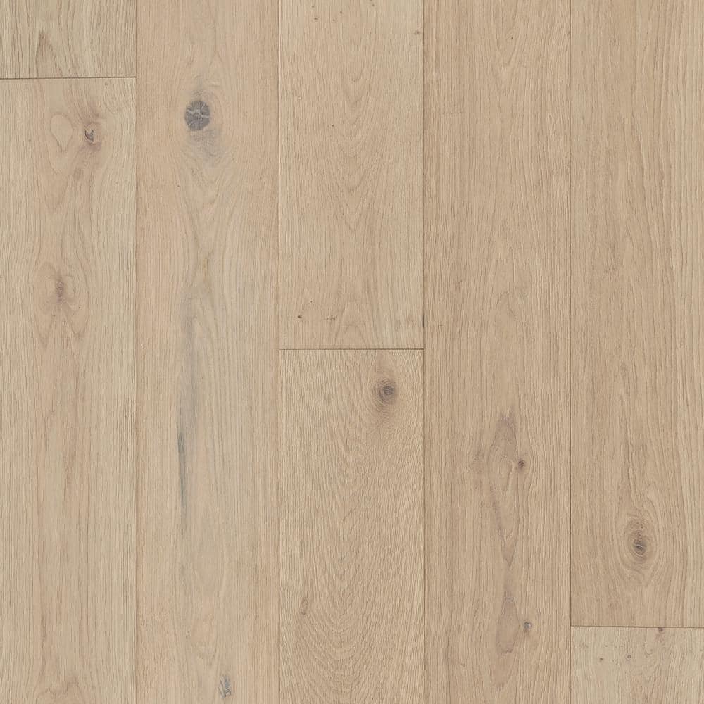 Upgrade your space with Malibu Wide Plank's Torrey French Oak Hardwood Flooring, featuring a luxurious 3mm sawn face veneer on wide 7.5 in. planks. The wire brushed surface and low-gloss urethane finish add sophistication, while the engineered construction promises durability and versatile installation.