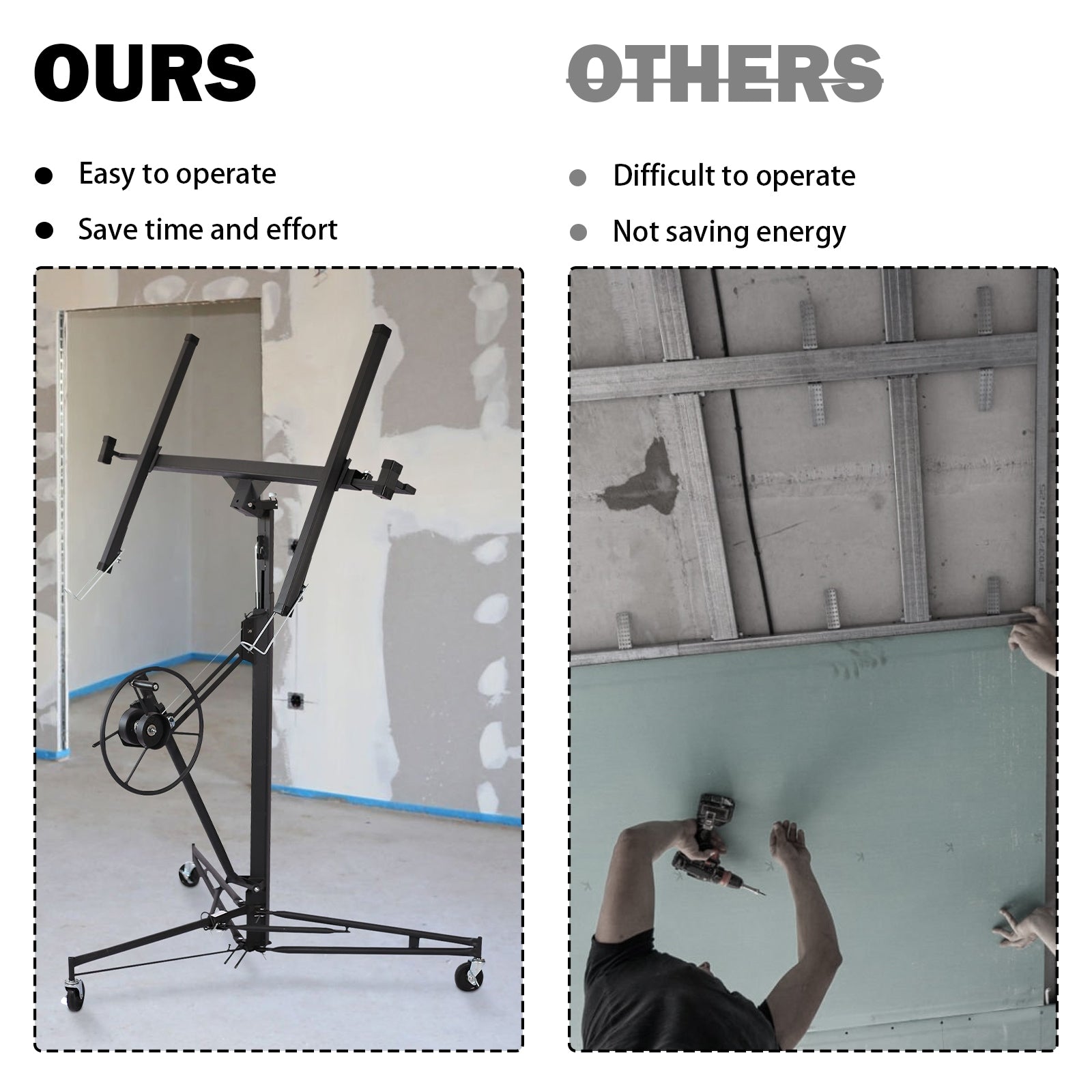 The Maocao Hoom 16ft Steel Drywall Lift is an essential tool for efficient drywall installation. With a robust steel build and precise lifting capabilities, this lift ensures safe, accurate drywall placement, making it ideal for both professionals and DIY enthusiasts. Its simple operation and portability enhance efficiency and elevate construction standards.