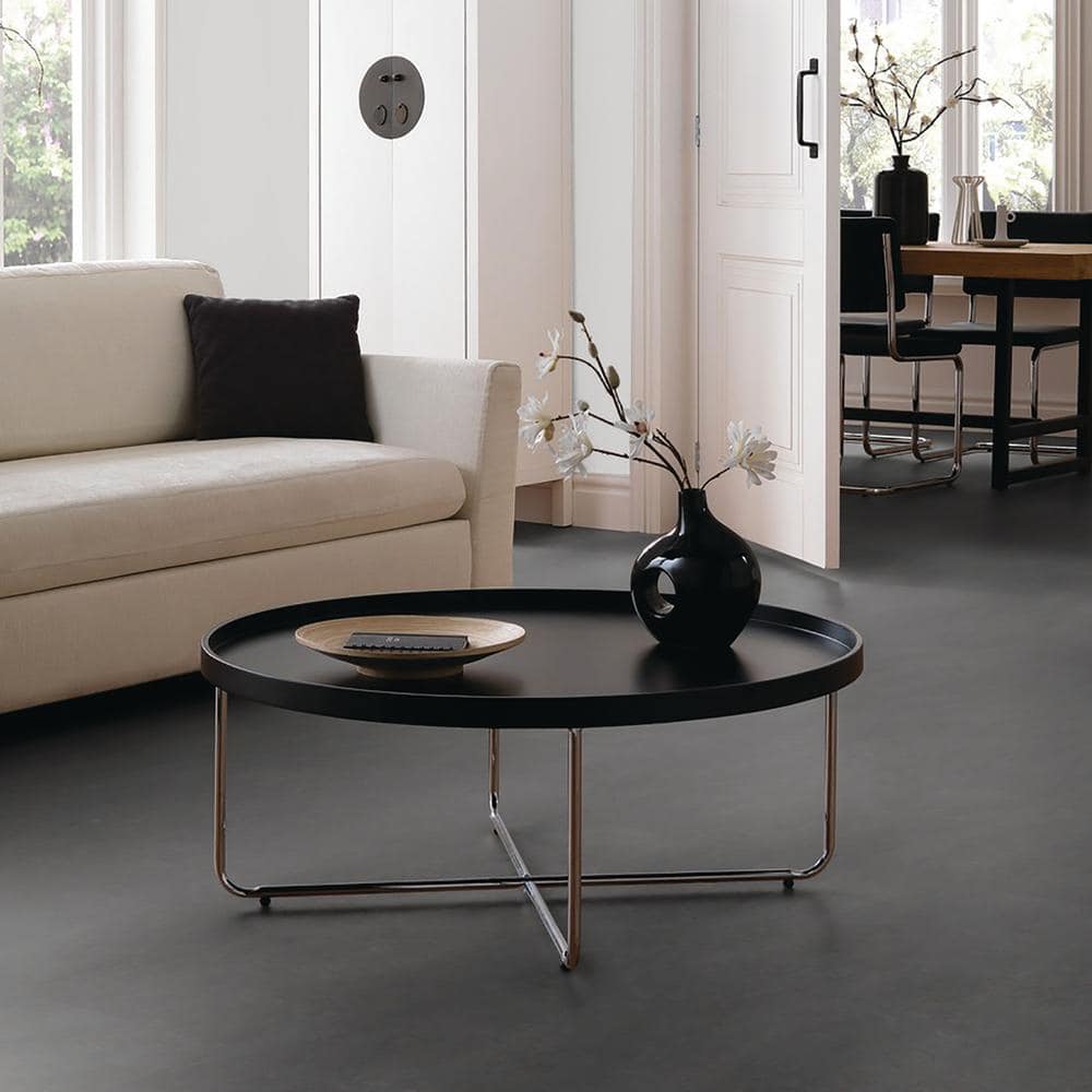 The Marmoleum Cinch Loc Seal Volcanic Ash floor tile transforms interiors with its marble-inspired allure and superior durability. Its deep gray hue and subtle texture add an understated elegance, creating a timeless foundation for any room. Consider using it in a living room paired with plush rugs and rich textiles for a farmhouse chic aesthetic. This flooring not only enhances a space but becomes an integral element of everyday luxury living.