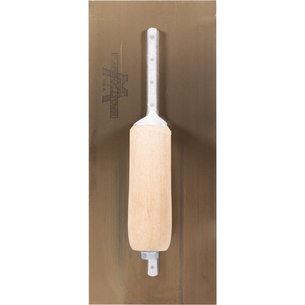 Achieve a flawless finish with the MARSHALLTOWN Curry Style Trowel, featuring a unique golden stainless steel blade that maintains its shape longer for consistent, professional results. The lightweight aluminum alloy Xtralite mounting and smooth camel back wooden handle ensure comfort and durability for demanding plaster and EIFS projects.