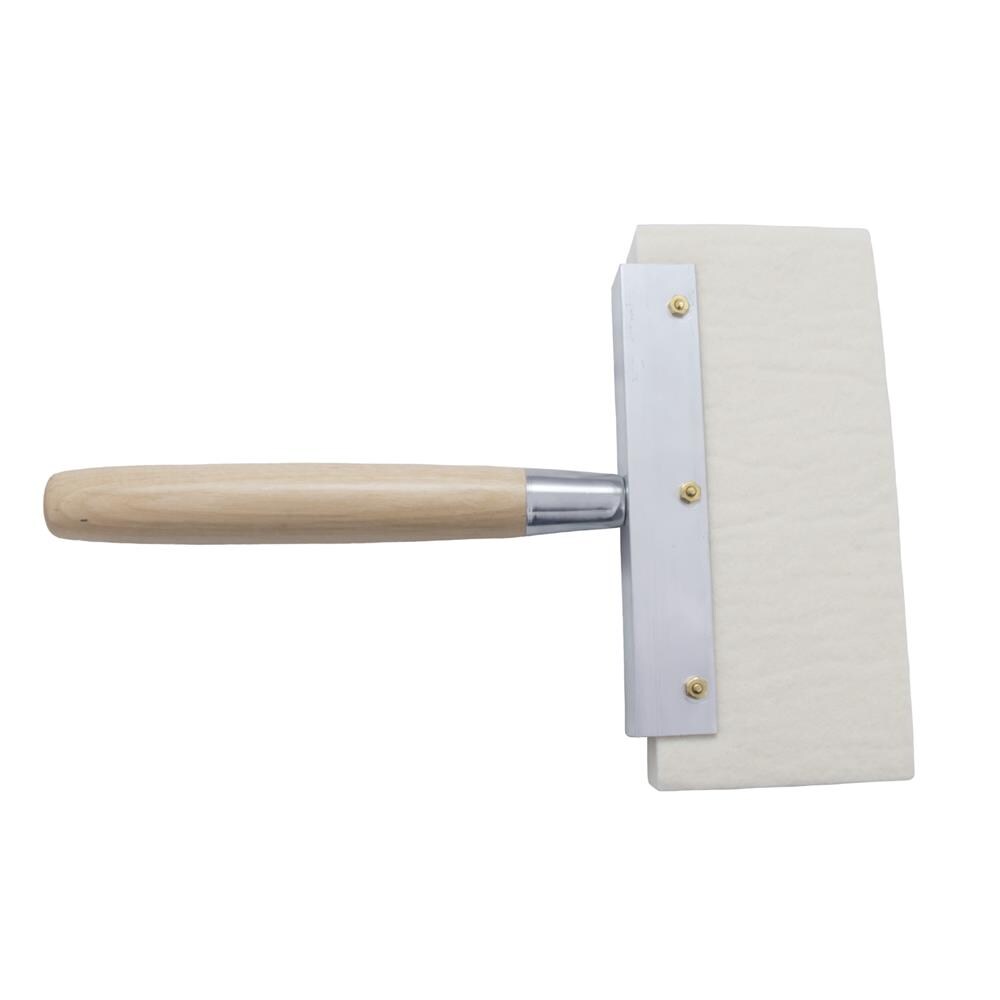 This Marshalltown Drywall Hawk is expertly crafted for seamless drywall finishing, featuring a durable aluminum blade and a sturdy hardwood handle. With two interchangeable felt pads, this tool is designed to optimize water application and removal, ensuring a pristine finish every time.