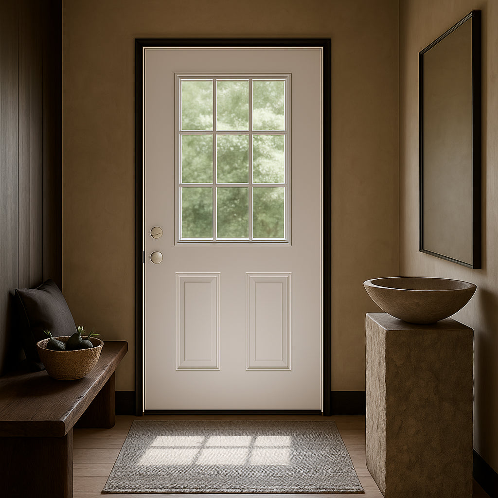 Upgrade your home's entryway with the Masonite Premium 9 Lite Steel Door for enhanced security, energy efficiency, and timeless curb appeal—order yours today!