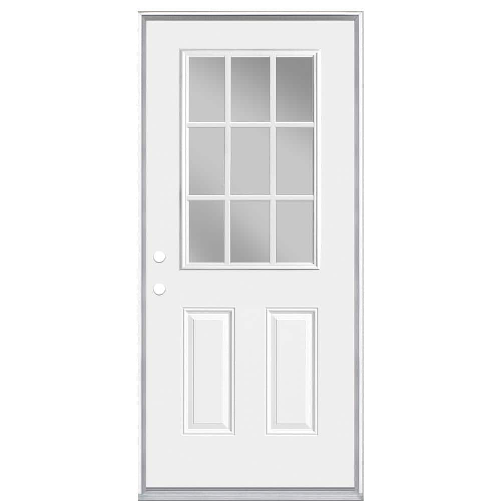 Premium 9 Lite Primed Steel Prehung Front Door (No Brickmold)