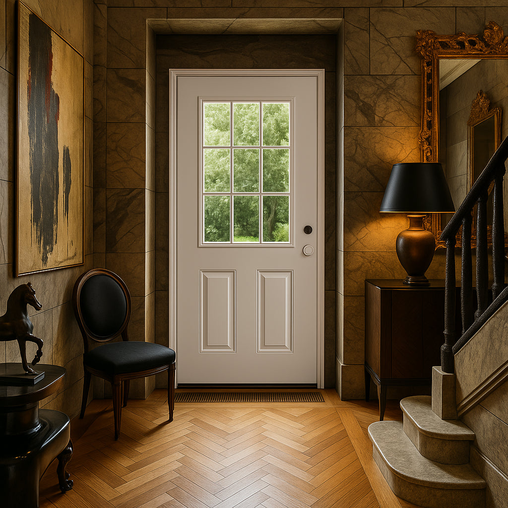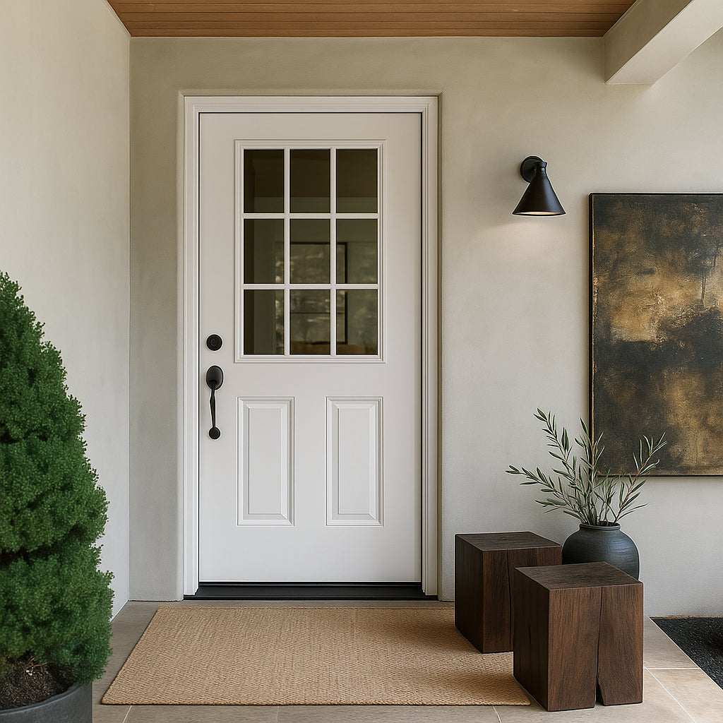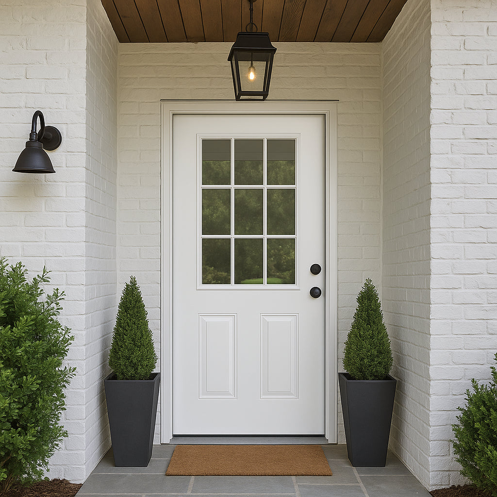 Step into a world where classic design meets modern innovation with this Masonite 9 Lite Fiberglass Door. The crisp, smooth white finish and elegant grid of glass lites evoke a sense of refined tradition, while the robust fiberglass construction ensures enduring beauty and resilience. I love how the internal grille detail adds architectural interest, making your entryway both inviting and sophisticated. Style it with bold hardware and lush greenery to create a grand entrance that feels both welcoming and luxurious—an essential upgrade for any home seeking timeless curb appeal.