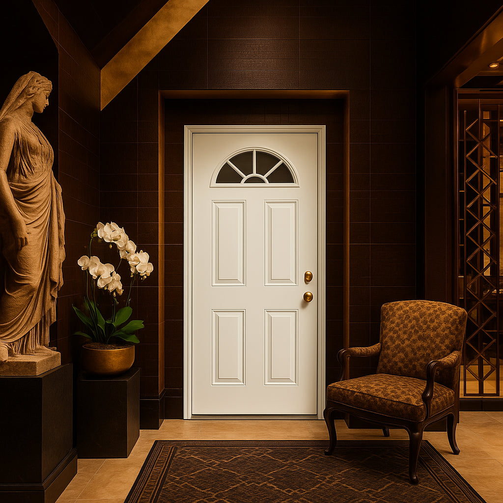 Channeling the enduring elegance of classic architecture, this Masonite Fan Lite Steel Door transforms any entryway into a welcoming focal point. The graceful fan-shaped window bathes interiors in natural light, while the crisp, four-panel design offers a refined canvas for your personal style. Pair it with bold hardware and a vibrant paint color to create a truly bespoke entrance. This door is not just a threshold—it’s an invitation to luxurious, secure, and energy-efficient living.