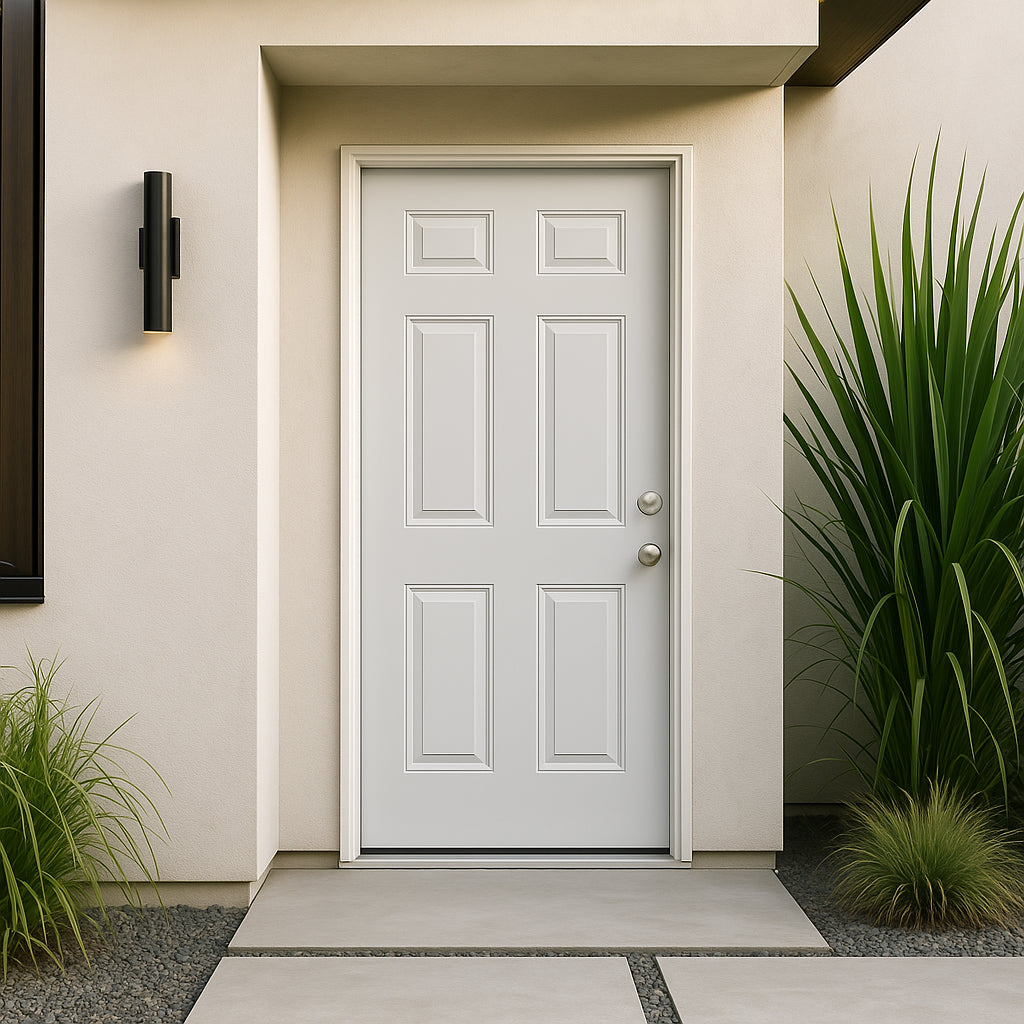 The Masonite Utility 6-Panel Primed Steel Prehung Exterior Door offers robust security and energy efficiency for your home. Its steel construction with a polyurethane core provides superior insulation, while the primed surface is ready for your custom paint or finish. Designed for easy installation, this door is ideal for front, back, or garage entryways.