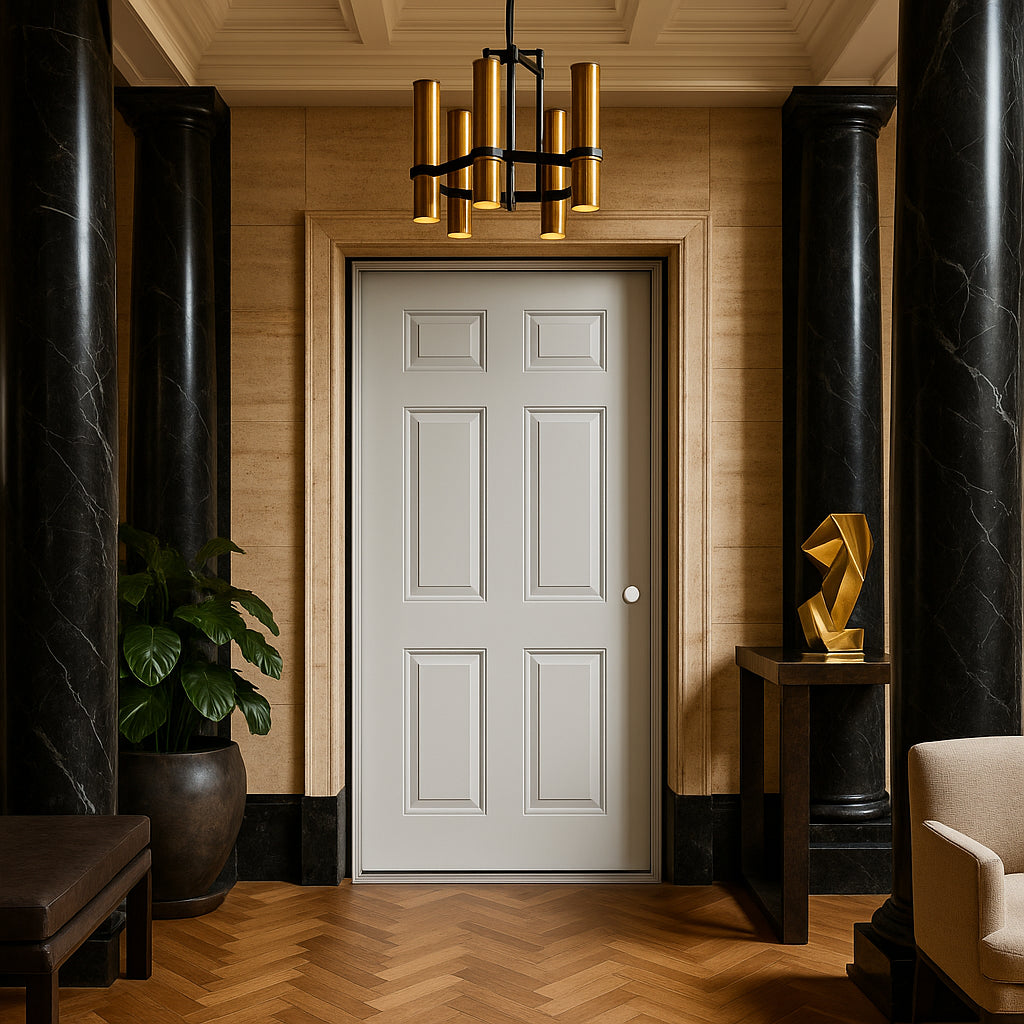 Channeling the enduring elegance of classic architecture, this 6-panel steel door transforms any entryway into a welcoming focal point. The crisp, primed surface offers a blank canvas for bold color or subtle sophistication, while the deep paneling adds architectural interest and depth. Pair it with sleek hardware and a vibrant paint hue for a modern twist, or keep it neutral for understated charm. This door is more than an entrance—it's a testament to refined living and enduring quality.