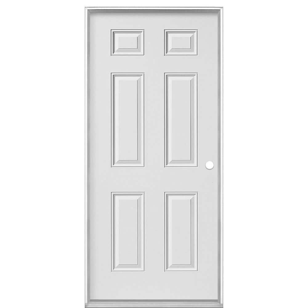 Masonite Utility 6-Panel Primed Steel Prehung Exterior Door, No Brickmold, Left-Hand Inswing, 32 in. x 80 in.