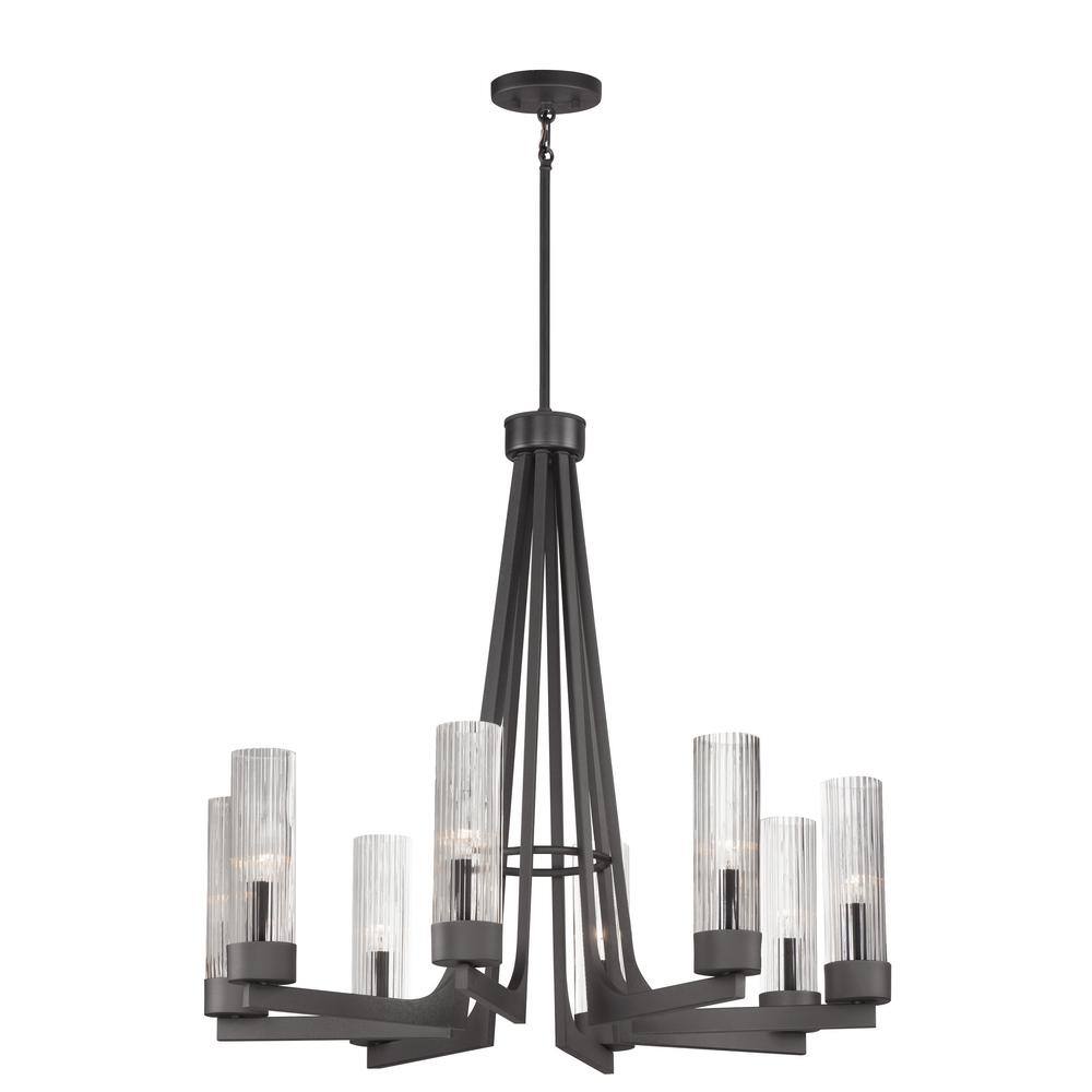 Elevate your space with the Delos 8-Light Gray Chandelier by Maxim Lighting. This stunning fixture combines timeless elegance with modern design, featuring a sleek anthracite finish and fluted glass shades that softly diffuse light for a captivating ambiance. Ideal for creating a focal point in dining rooms, foyers, or living areas, this chandelier is both functional and fashionable.