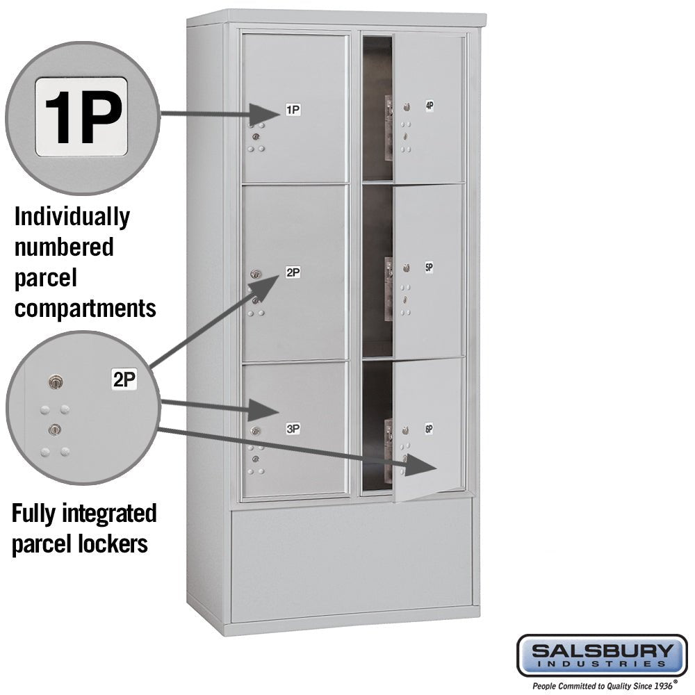 Maximum Height Free-Standing 4C Horizontal Parcel Locker with 6 Parcel Lockers in Aluminum
