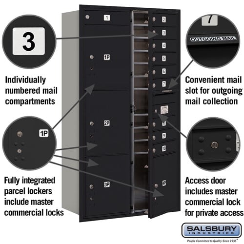 | Outgoing Mail Compartment | Includes master commercial lock access door and mail slot with weather protection hood |