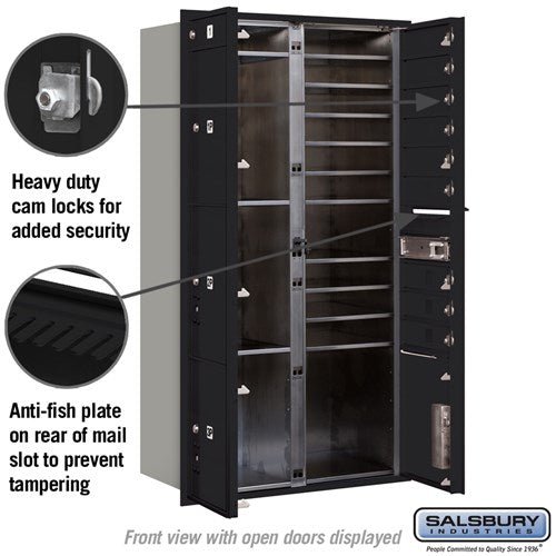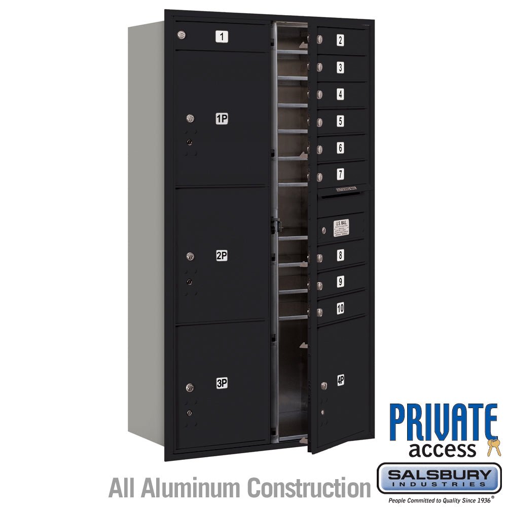 Maximum Height Recessed Mounted 4C Horizontal Mailbox with 10 Doors and 4 Parcel Lockers in Black with Private Access - Front Loading