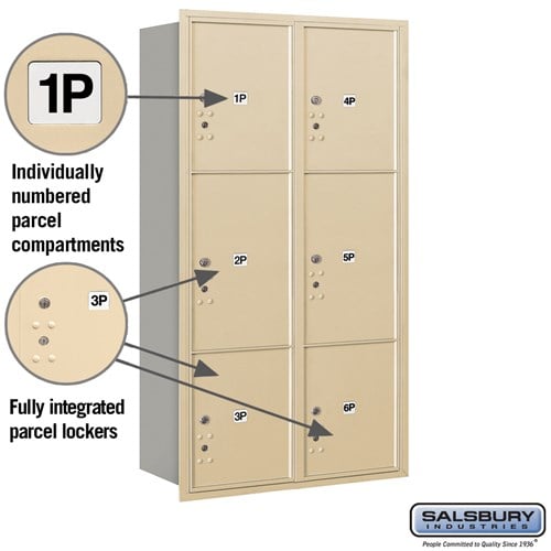 Maximum Height Recessed Mounted Parcel Locker with 6 Compartments - Sandstone - Rear Loading