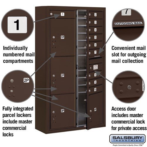 Maximum Height Surface Mounted 4C Horizontal Mailbox with Parcel Lockers in Bronze