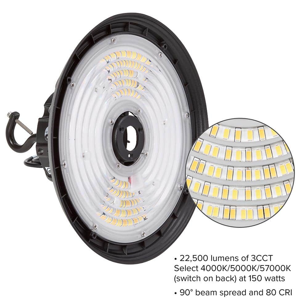 LED UFO High Bay Light, Black, 22,500 Lumens