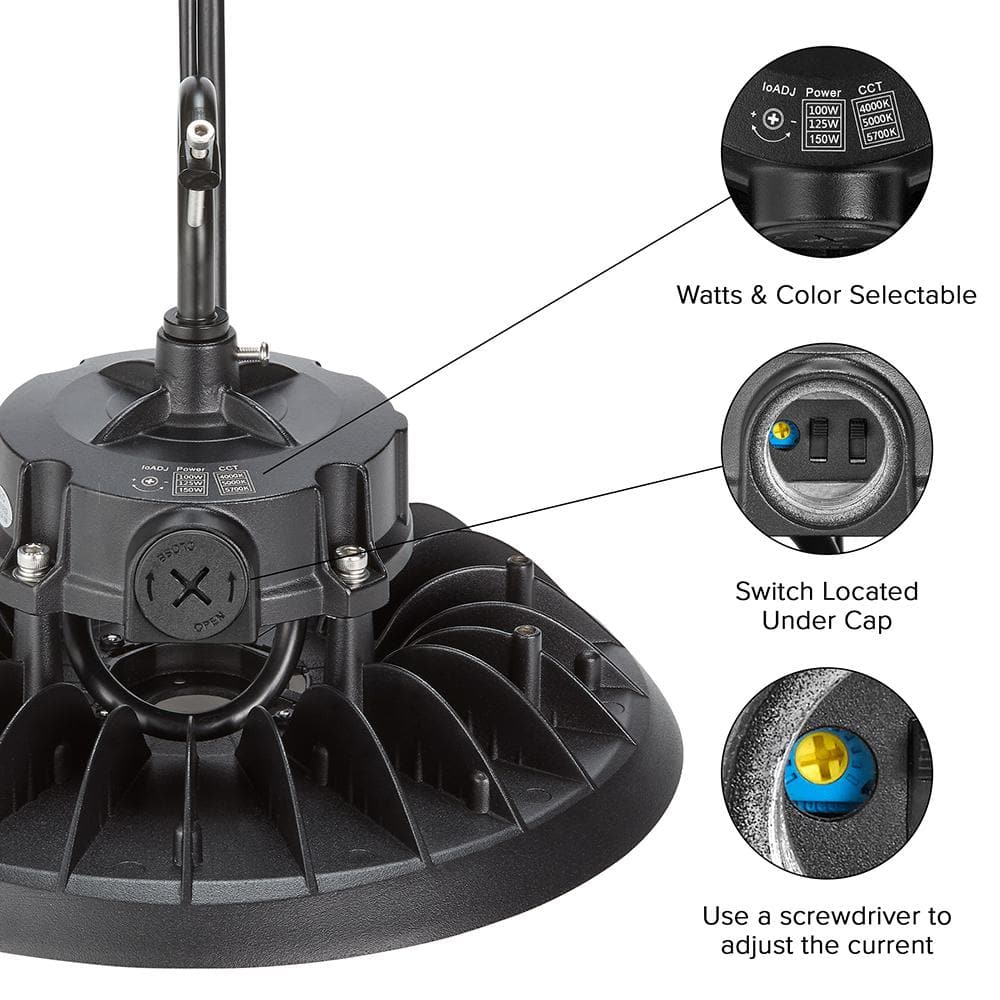 • Selectable Wattage: Easy adjustment between 100W, 125W, and 150W for tailored energy use.