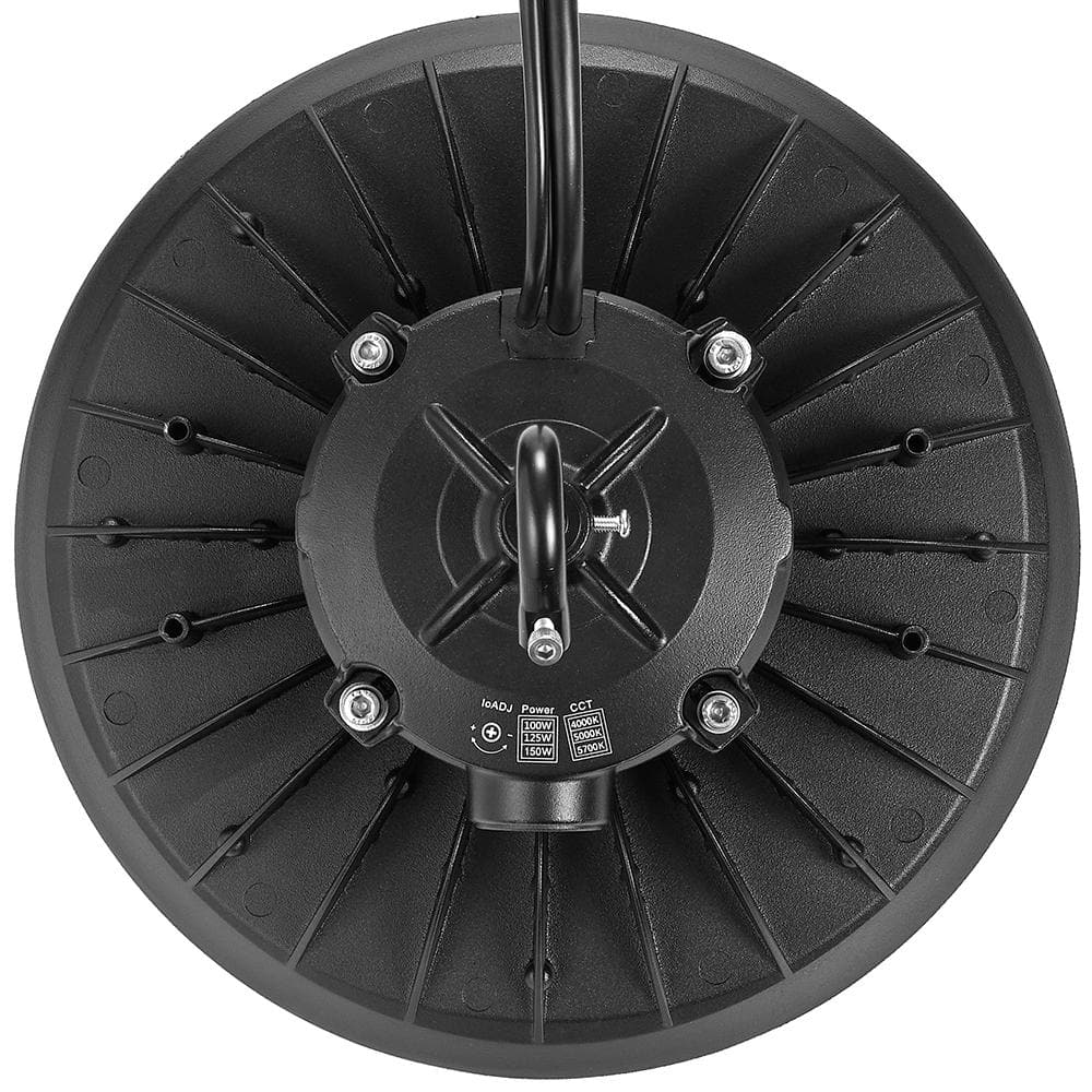 Maxxima 10 in LED UFO High Bay Light Fixture, 22,500 Lumens, 3 CCT 4000K-5700K, Selectable Wattage 100-150, Black, Hardwired