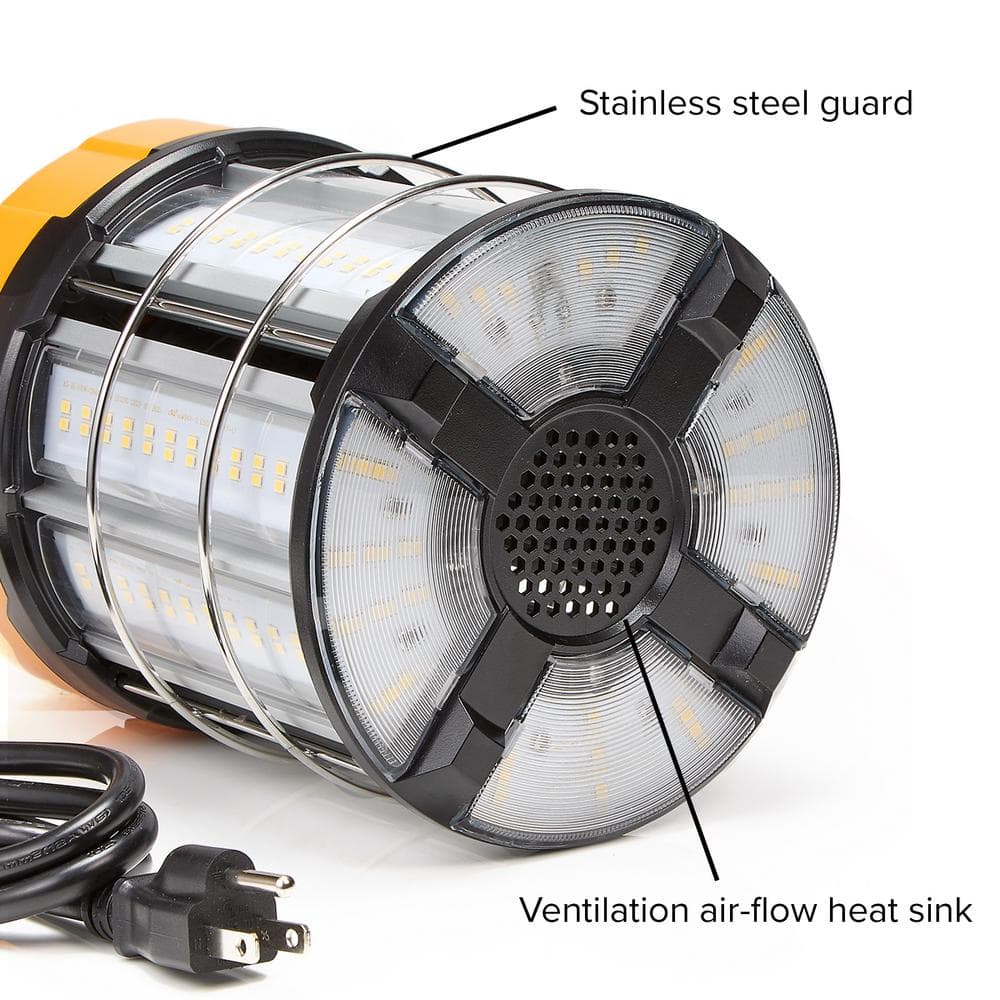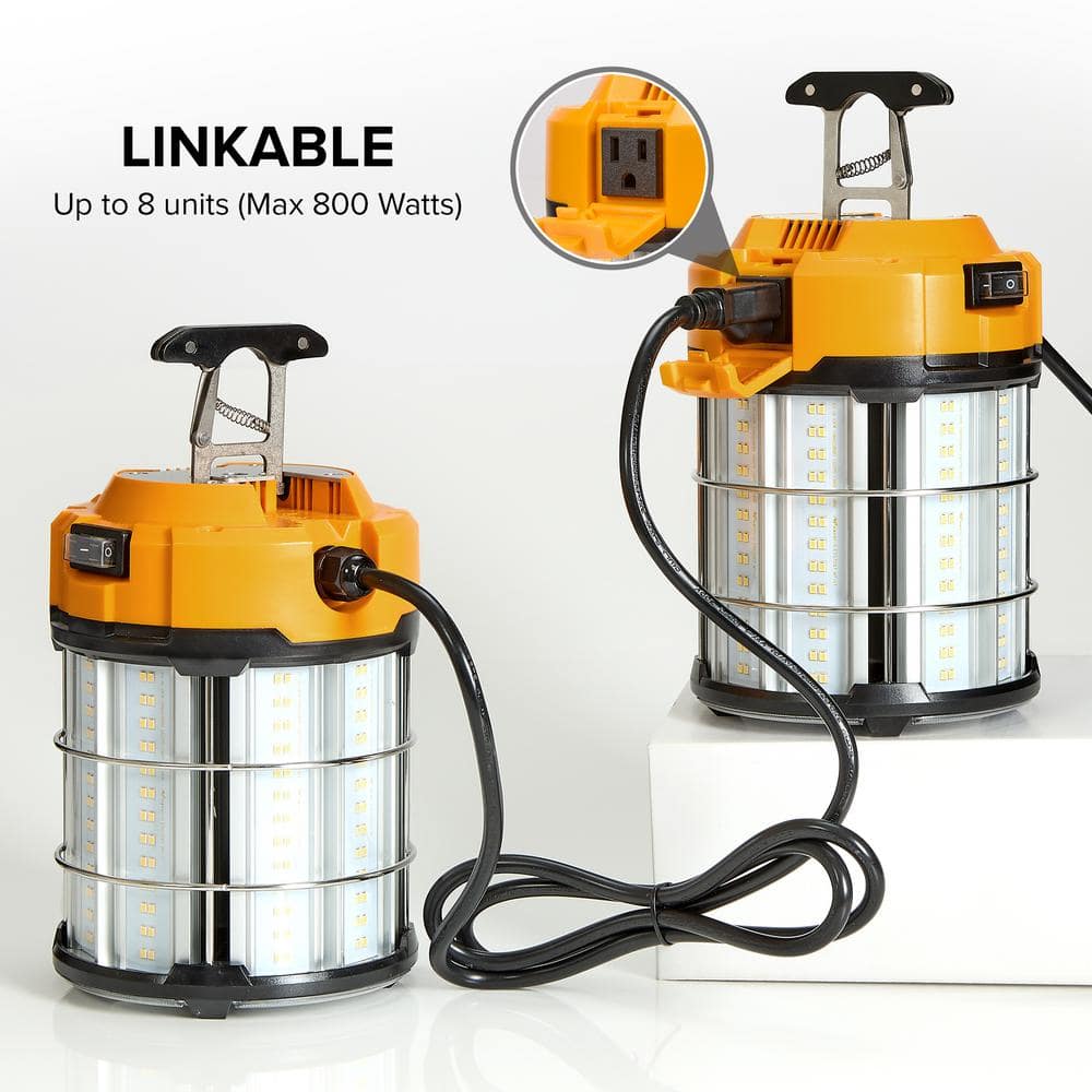 Illuminate your work site efficiently with the Maxxima 100W High Bay LED Work Light. Offering a powerful 12,000 lumens and a 5000K daylight color temperature, this portable light provides unparalleled brightness. Its 360° beam angle ensures comprehensive coverage and its linkable feature allows connectivity of up to 8 lights, ideal for extensive jobsite lighting.