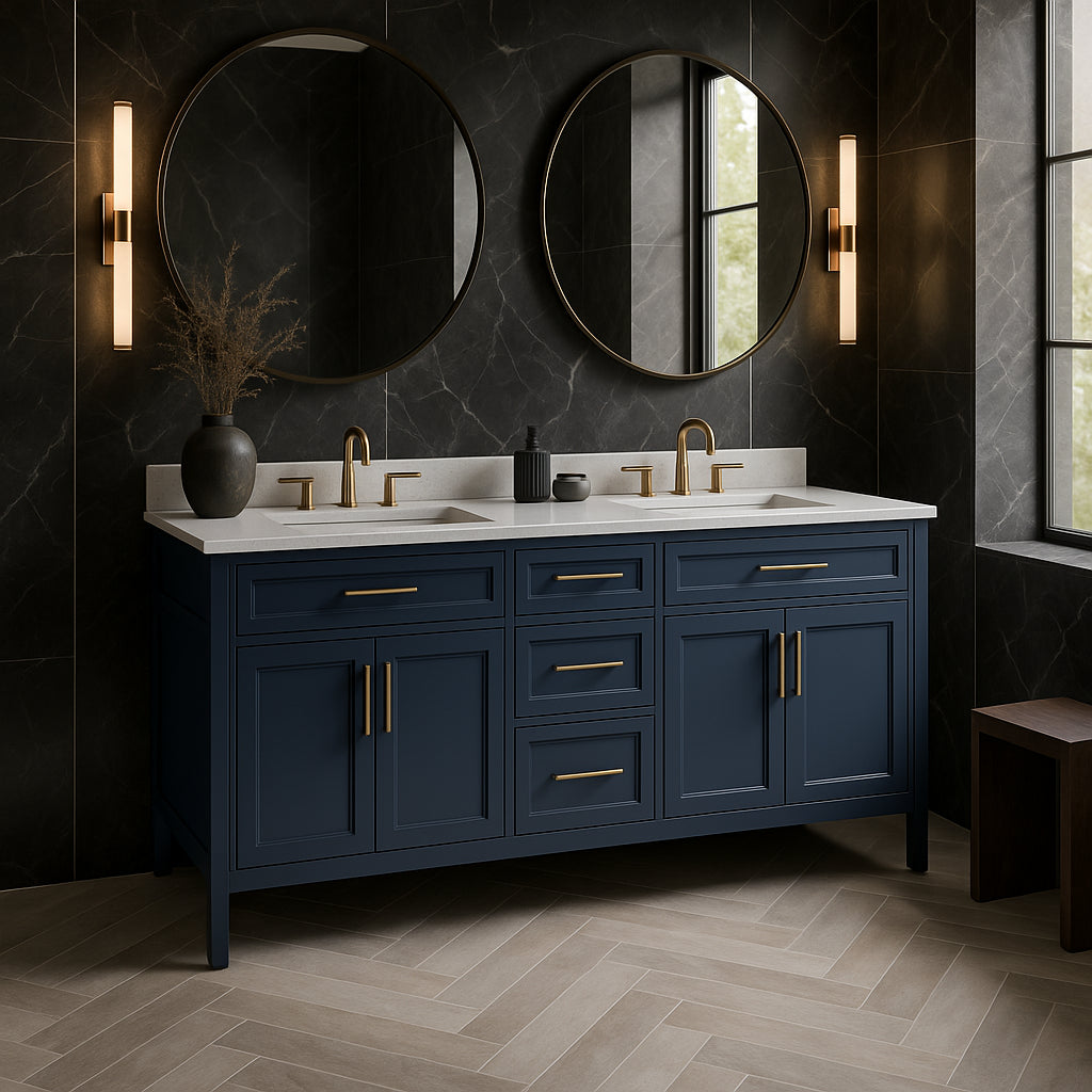 Vanity Features Adjustable Hinges, Concealed Hinges, Drawers, Predrilled, Soft Close Doors, Soft Close Drawers