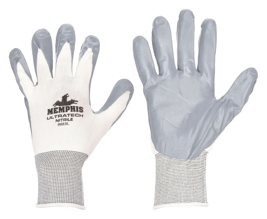 MCR SAFETY UltraTech 9683 Nitrile Coated Gloves - Large, White
