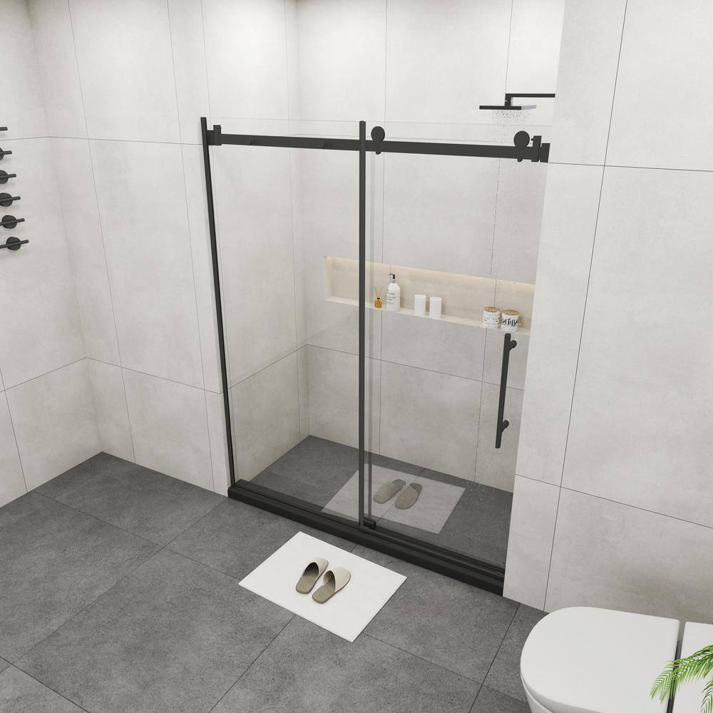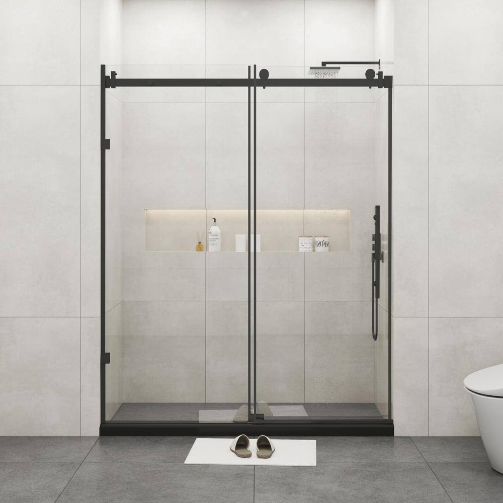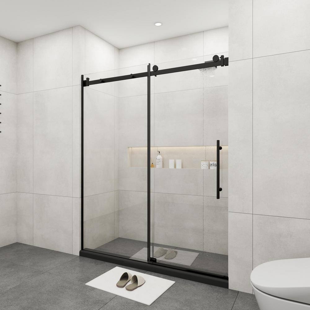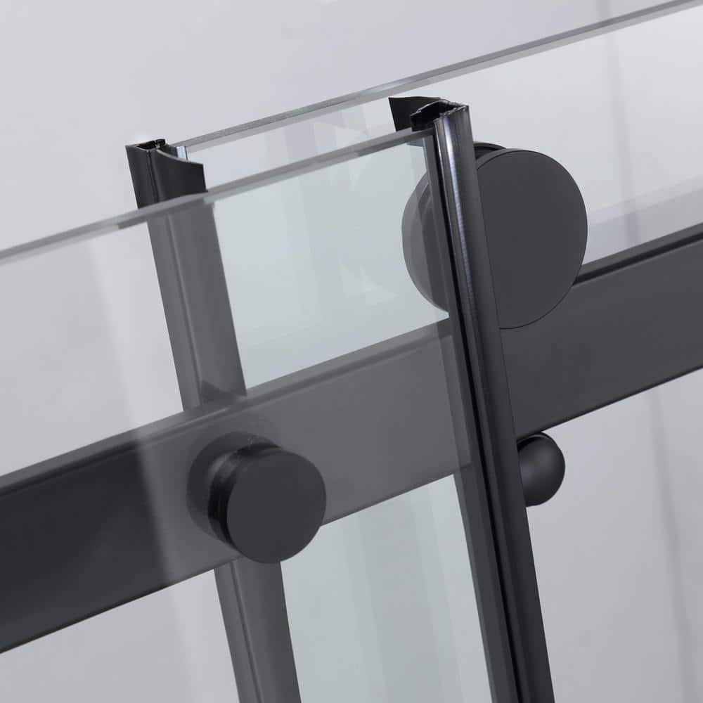 Frameless Matte Black Sliding Shower Door - 72x76 inches