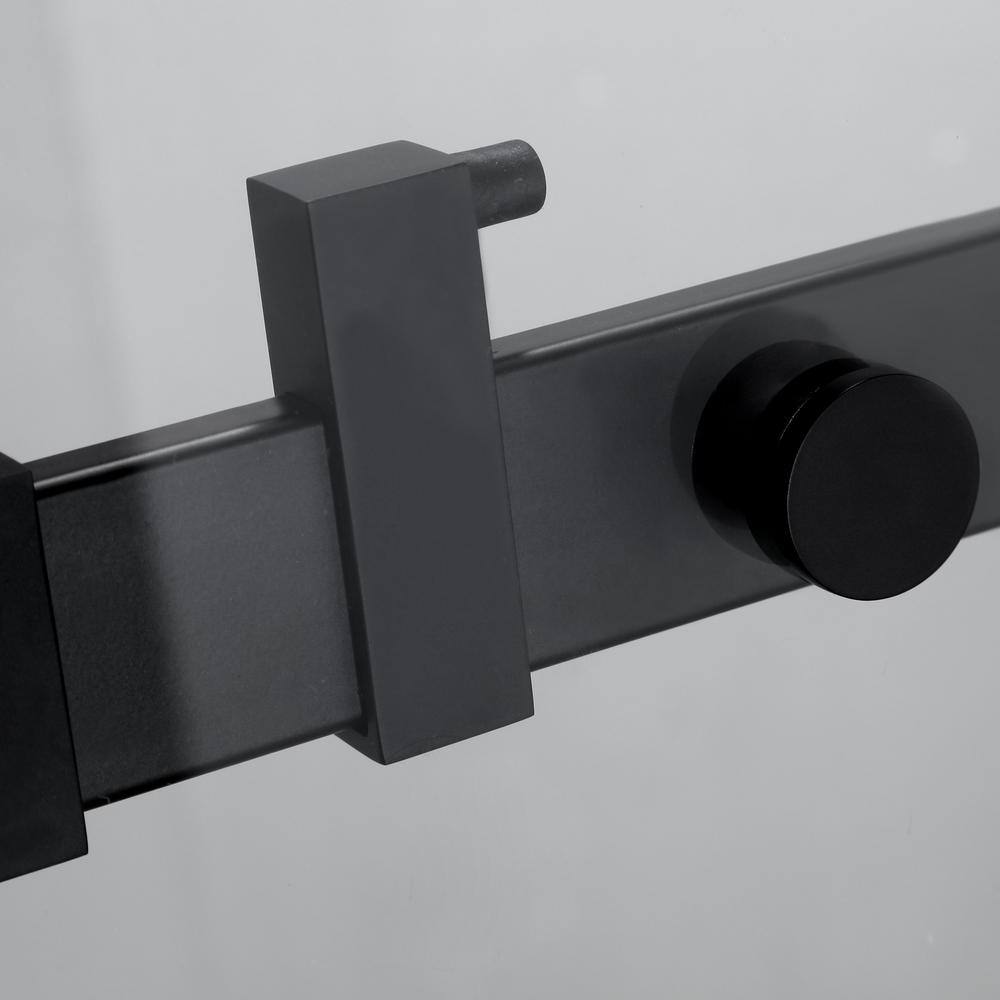 Picture your bathroom transformed into a sanctuary of sophistication with this Frameless Matte Black Shower Door. Its minimalist design invokes a sense of openness while the high-gloss clear tempered glass captures and amplifies natural light. Pair it with sleek tiles and lush greenery for a spa-like ambiance. A quintessential piece for those seeking modern luxury with a functional twist.