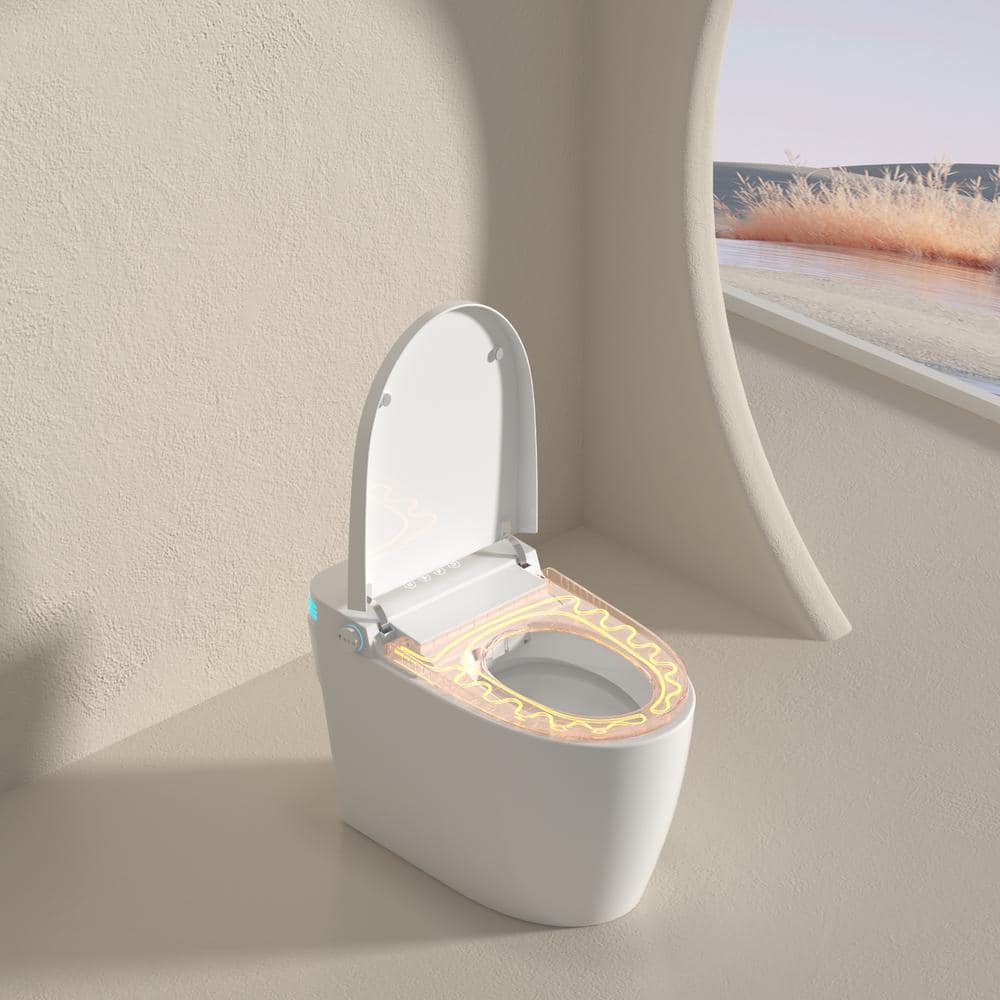 The MEDUNJESS Smart Bidet Toilet transforms your bathroom into a sanctuary of modern elegance and high-tech luxury. Its voice control functionality and auto features redefine convenience, serving as a testament to innovative design. With a sleek ceramic build and understated yet luxurious form, it integrates seamlessly into any contemporary interior. Embrace the subtle glow of its night light feature for a touch of serenity, crafting an indulgent escape on par with five-star spas, right within your home.
