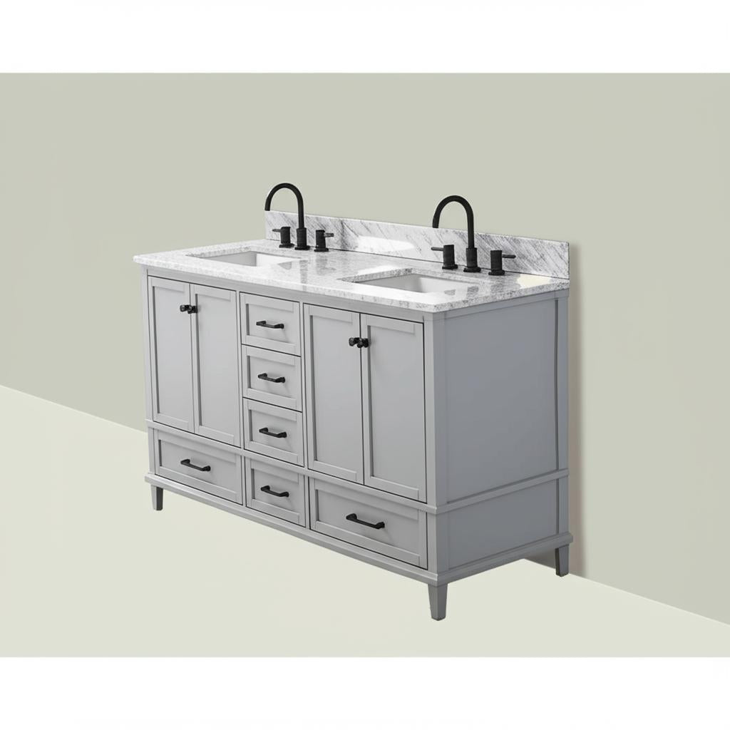 Home Decorators Collection Merryfield 61" Double Sink Vanity in Dove Grey with Carrara Marble Top