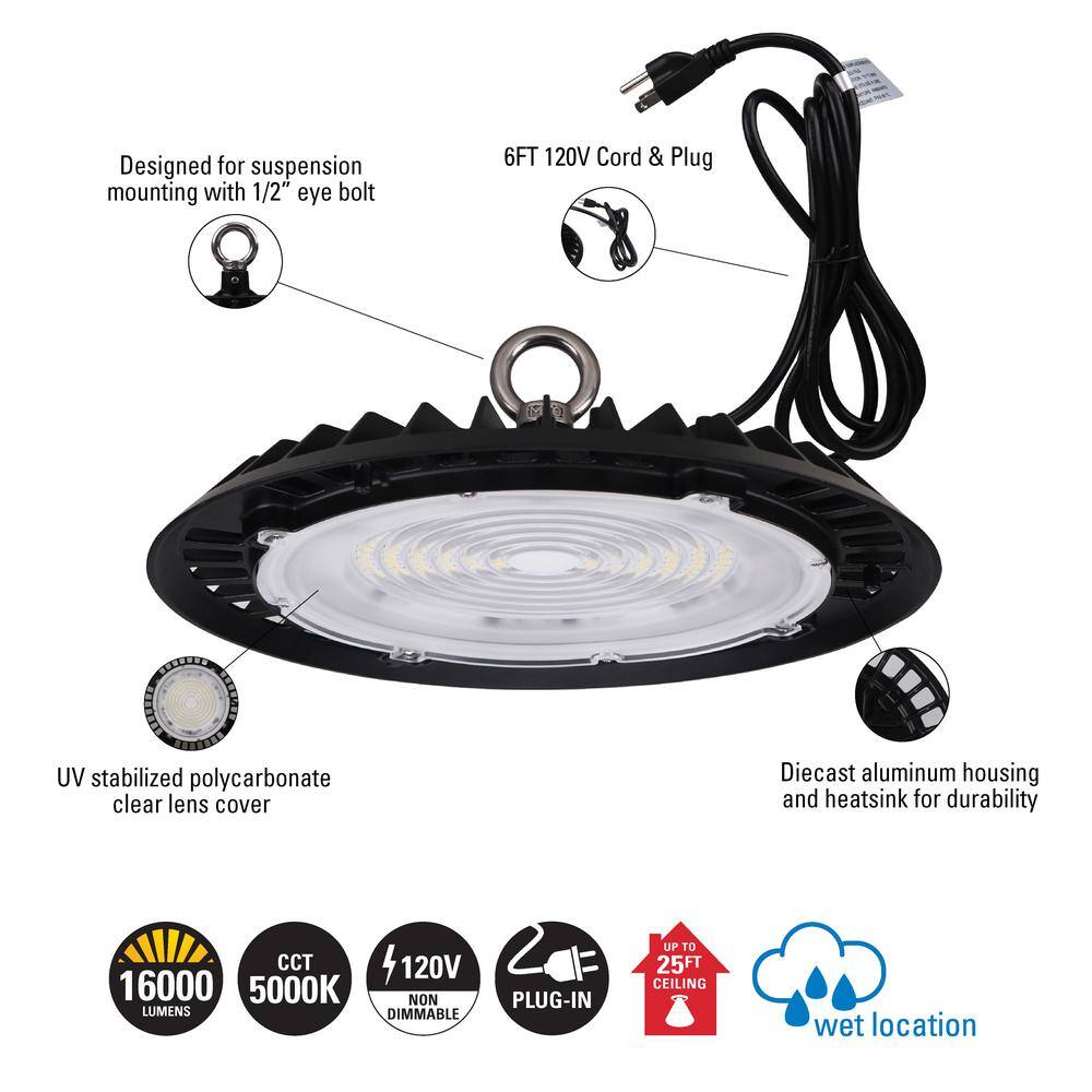 Metalux 11 in. HBD High Bay 180-Watt Equivalent, 16K Lumens 5K CCT Cord and Plug