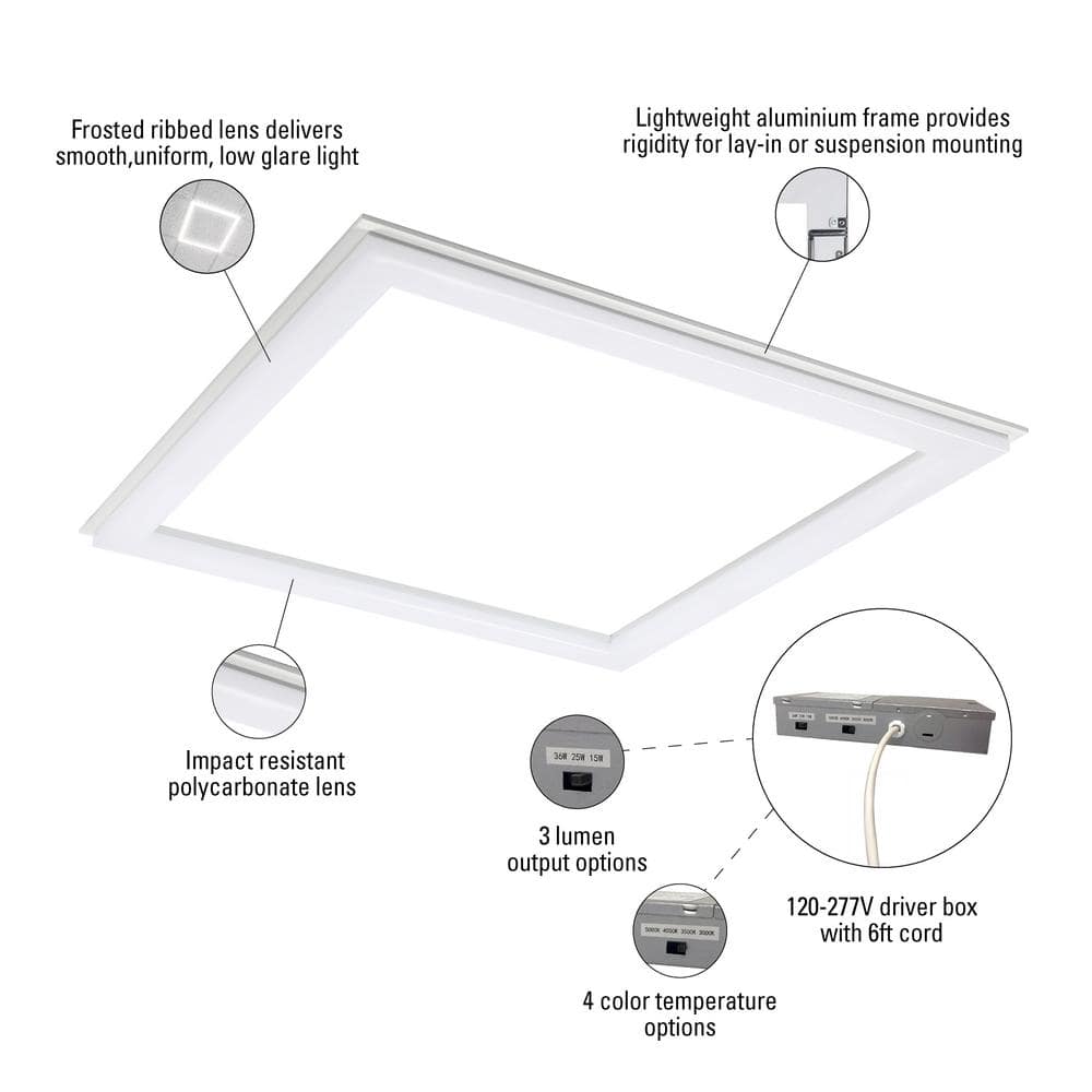 A: Selectable switches on top of the driver box allow quick adjustments to choose between 4500, 3200, or 2000 lumens and color temperatures of 3000K, 3500K, 4000K, or 5000K.