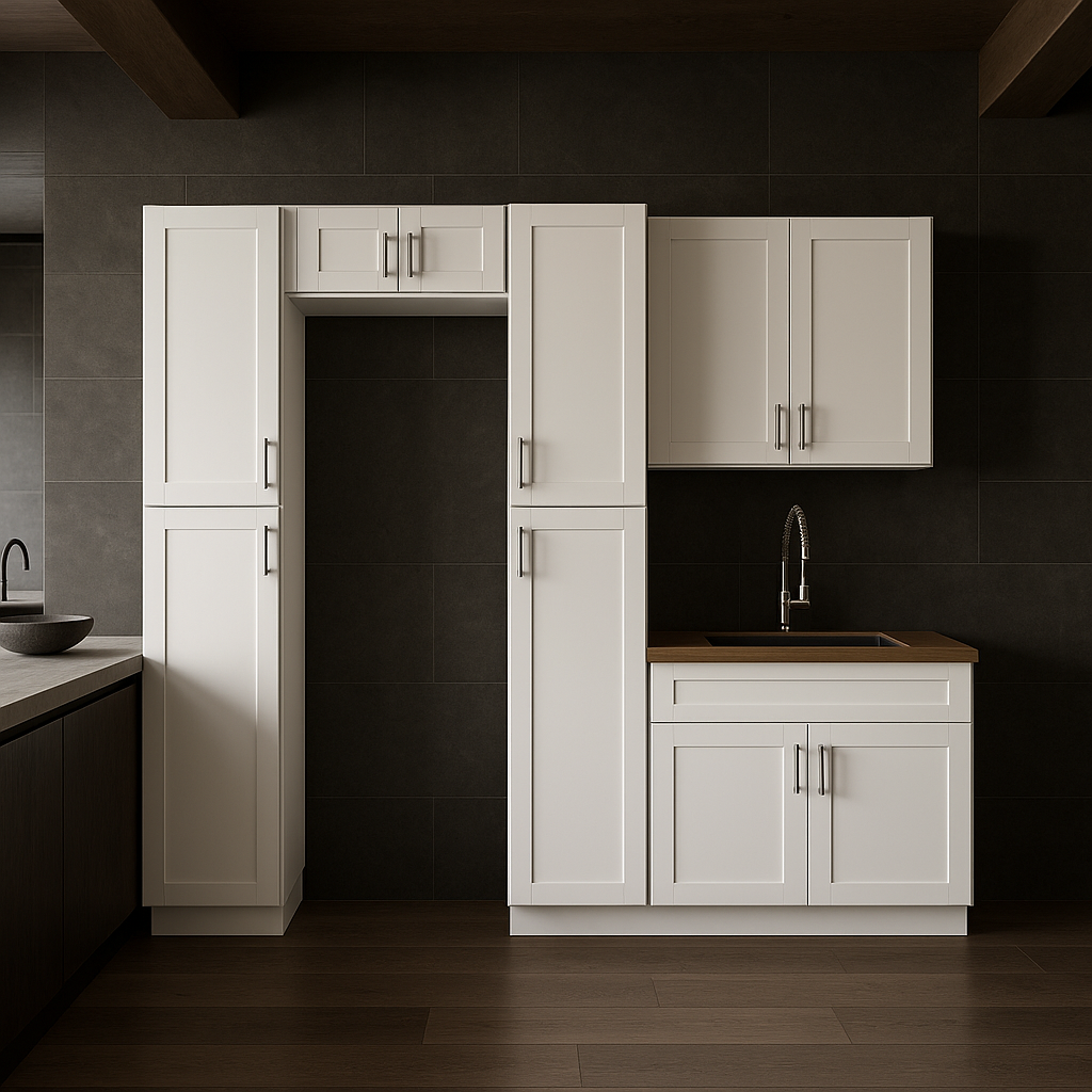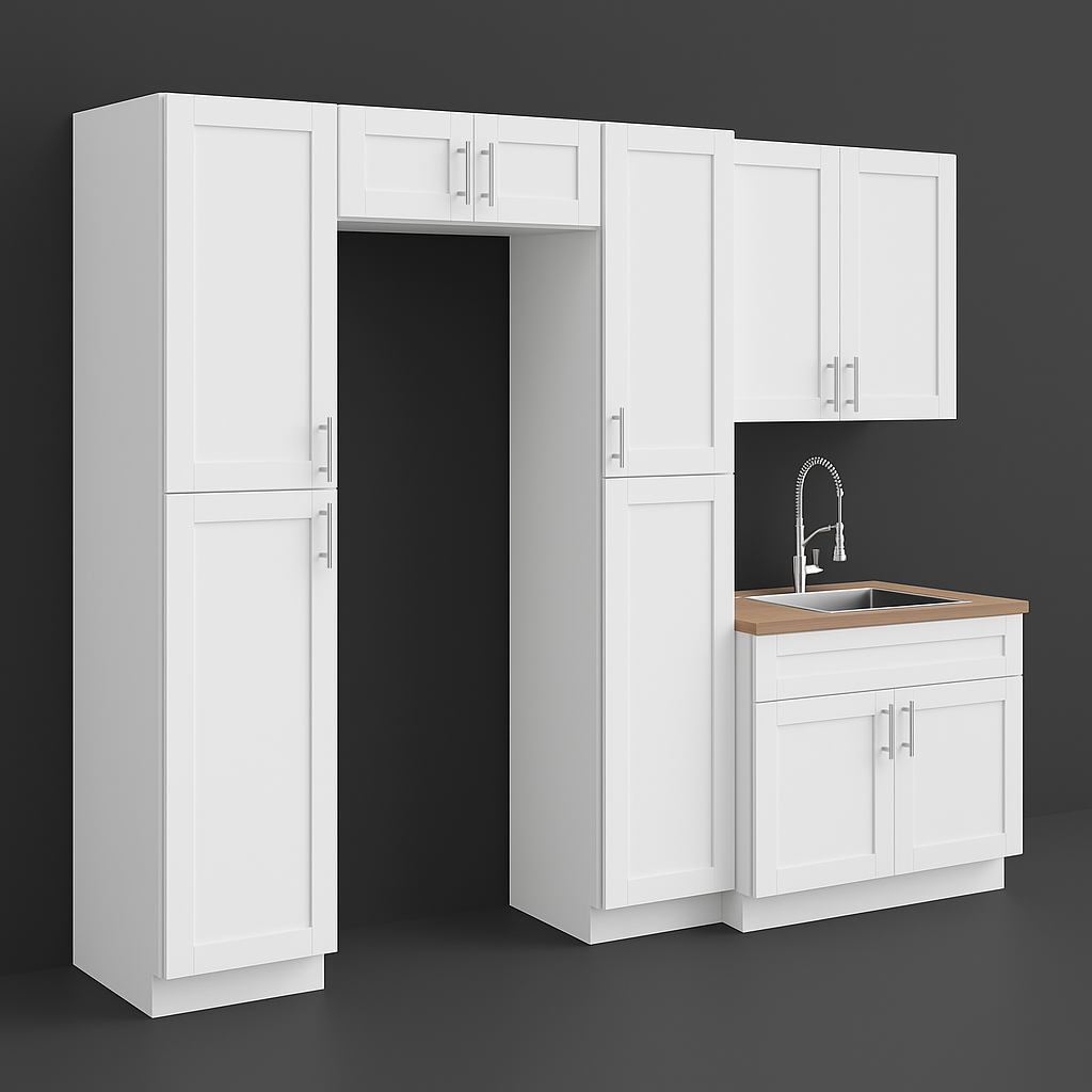 The MILL'S PRIDE Richmond Verona White Shaker Cabinet Set offers a quick assembly solution for your laundry room or kitchen. Featuring durable plywood construction, soft-close doors, and a sleek Verona White finish, this set combines style and functionality.
