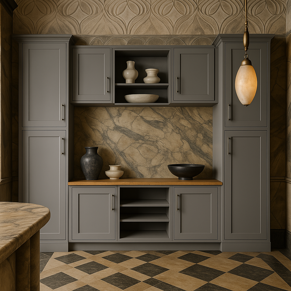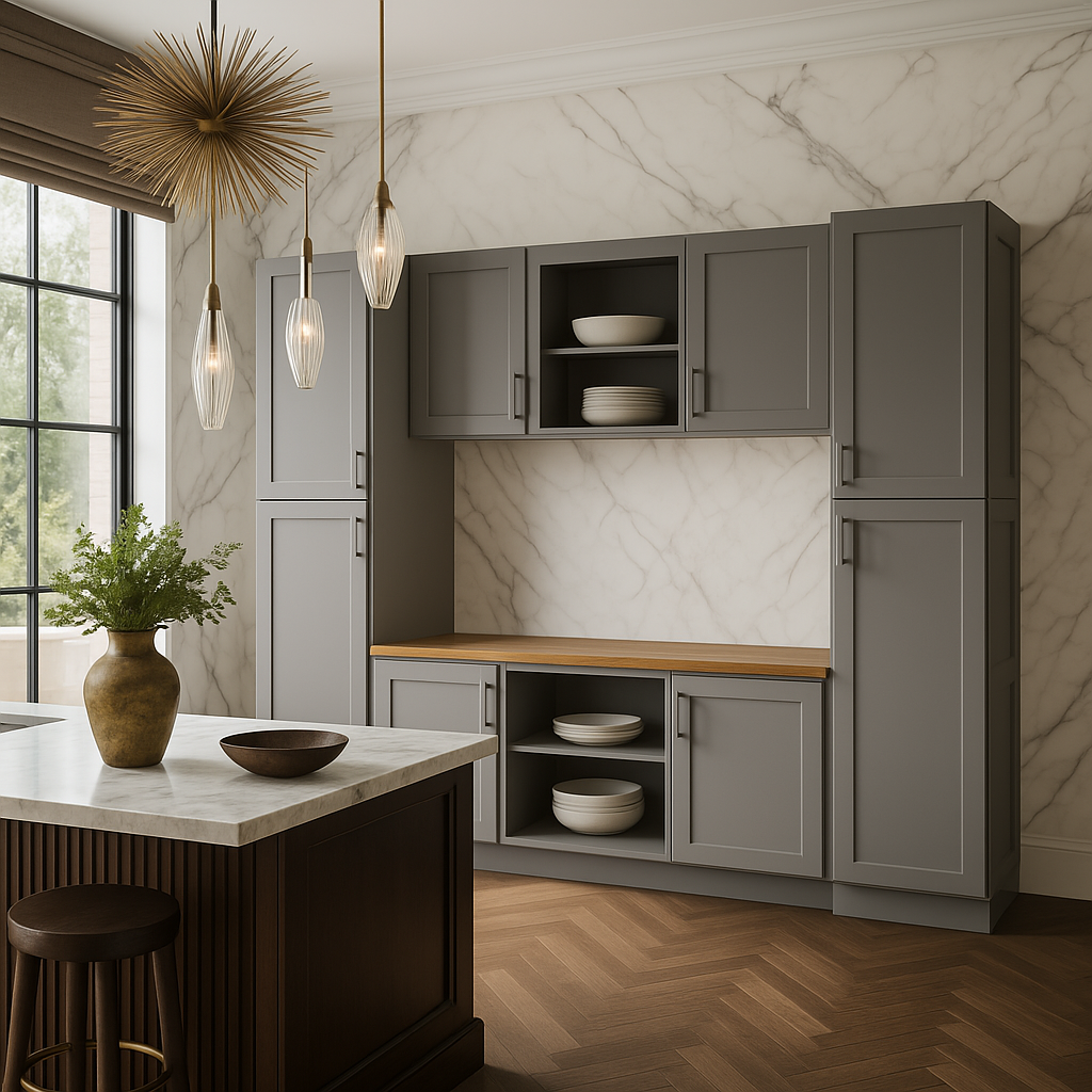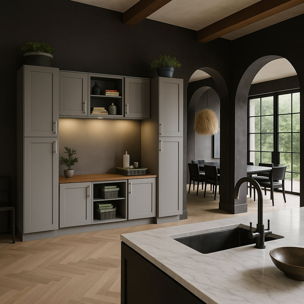 Upgrade your kitchen or mudroom with the stylish and durable Richmond Vesuvius Gray Cabinet Ensemble today!