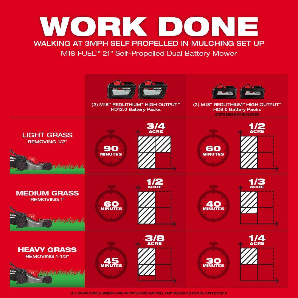 Milwaukee M18 FUEL Brushless Cordless 21 in. Dual Battery Self-Propelled Mower w/8 in. Pruning Saw, (2) 12.0Ah Battery, Charger