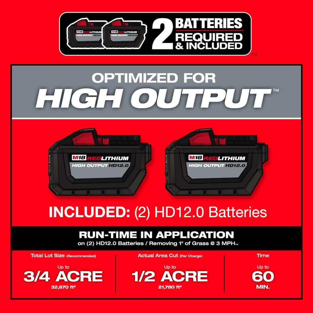 Dual Battery System: Includes two 12Ah M18 REDLITHIUM batteries for up to 60 minutes runtime