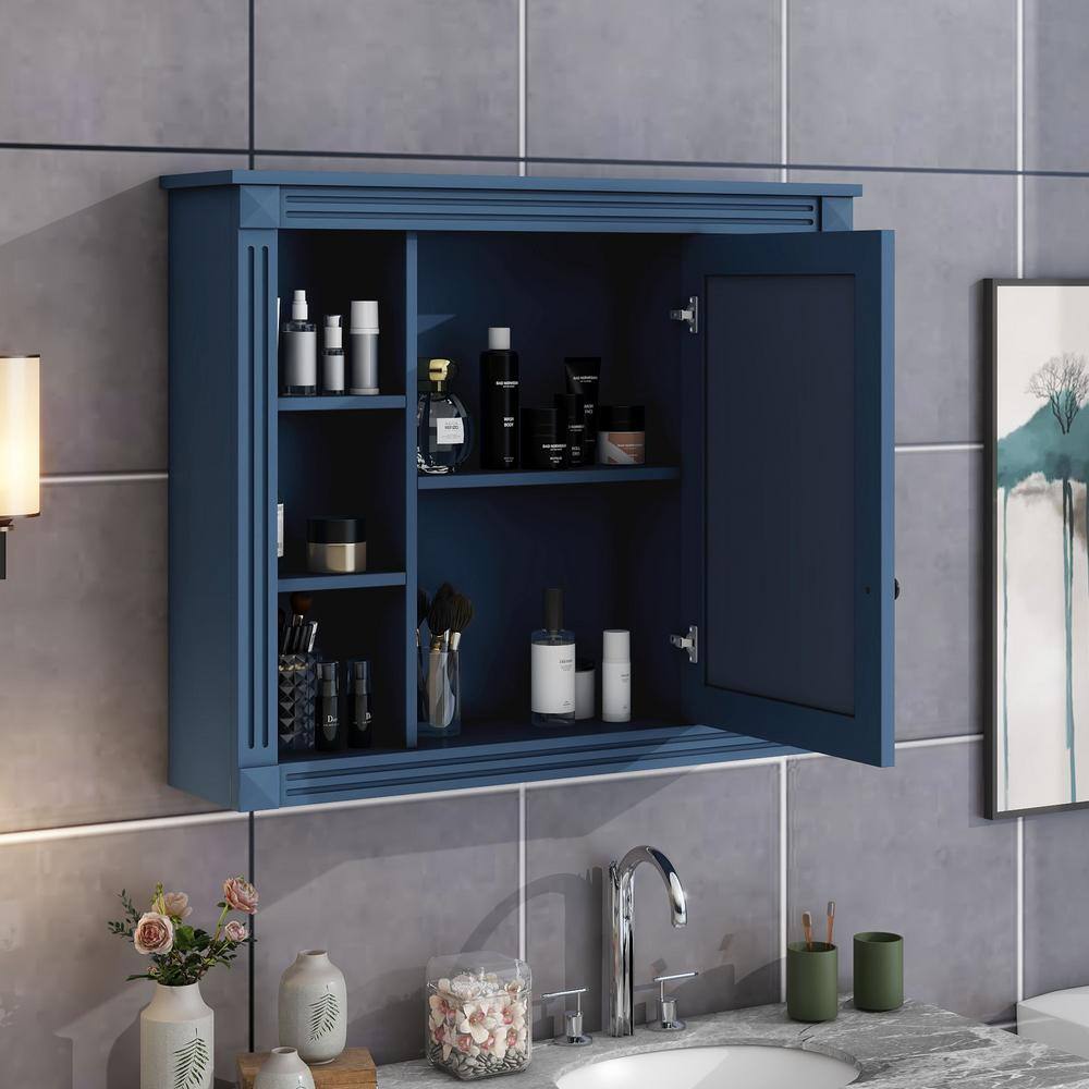 Elevate your bathroom with the Miscool Ami Medicine Cabinet, a blend of modern elegance and practical storage. Crafted from high-quality MDF with a striking royal blue finish, this cabinet features mirrored doors that open to ample concealed storage, helping keep your space organized and clutter-free.