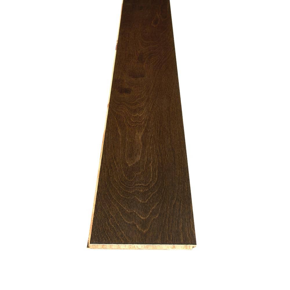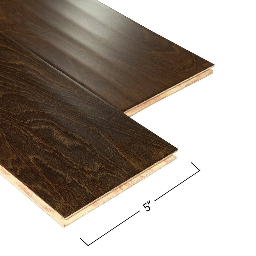 Enhance your space with Mohawk's Olde Town Tobacco Birch Hand Scraped Engineered Hardwood Flooring, a blend of enhanced durability and timeless elegance. The dark brown birch hardwood boasts a sophisticated scraped texture ideal for both residential and commercial settings. With its easy-to-install tongue and groove design, it offers a 25-year wear resistance warranty, promising beauty and resilience for years to come.