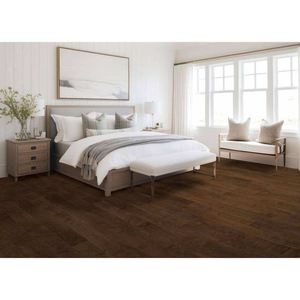 Transform your living space with the enduring elegance of Mohawk's Olde Town Tobacco Birch Hand Scraped Engineered Hardwood. The rich, dark hues and artisanal scraped texture of the birch wood create an inviting and sophisticated atmosphere in any room. Imagine this luxurious flooring gracing your entryway or great room, where its character and depth will complement both modern and traditional styles superbly. Versatile and distinctive, it serves as the perfect canvas to showcase your interior decor vision, proving essential to the pursuit of refined living.