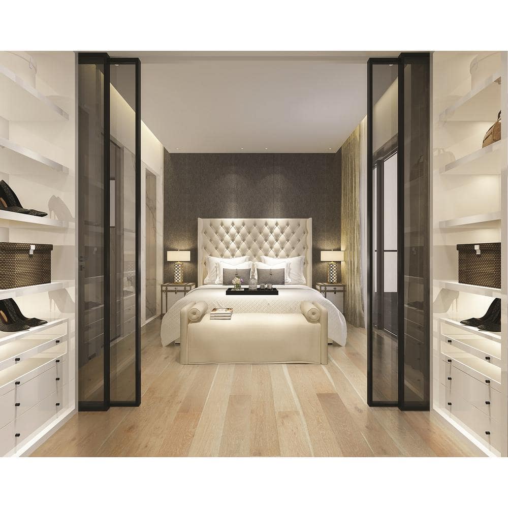 - Design: Light gray tones with a wirebrushed texture for a modern look